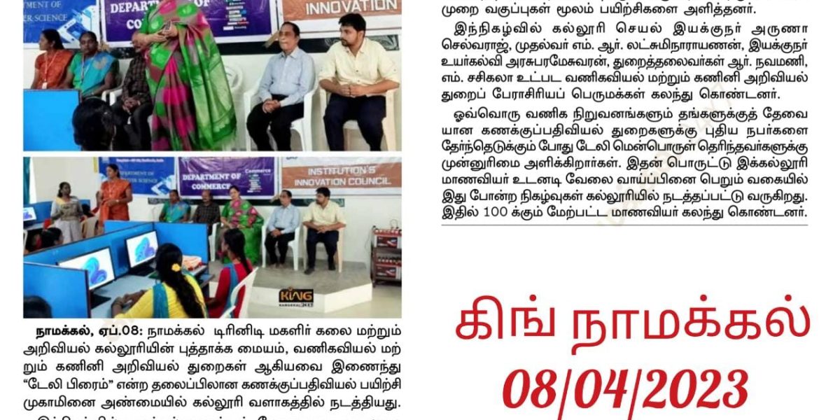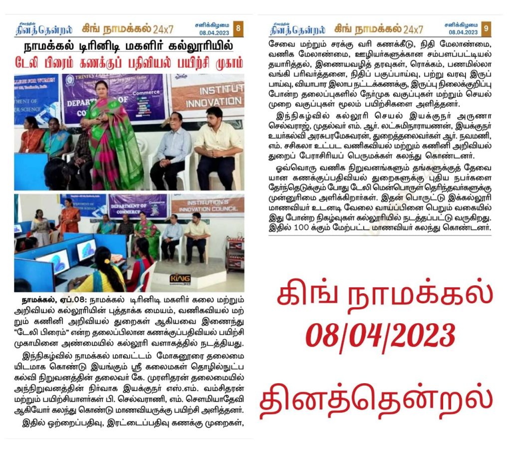 The Institution’s Innovation Council in association with Post Graduate Research Department of Commerce & Computer Science, Trinity College for Women, Namakkal and in support of Sri Kalaimagal Group of Technical Institutions, Namakkal, Karur and Tiruchirappalli Districts organized a two day workshop titled “TALLY PRIME” on 27th & 28th March 2023