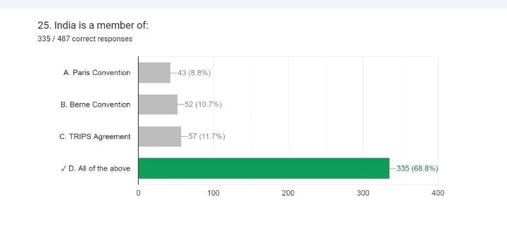 The Institution’s Innovation Council, in association with the Quiz Club, Trinity College for Women, Namakkal, organized an online IPR Awareness Quiz Programme on 21st April 2025. The main aim of the quiz programme was to enhance the awareness of Intellectual Property Rights among students of the College. The quiz questions comprised 25 multiple-choice questions (2 marks for each question) based on the need, scope, types and importance of Intellectual Property Rights.