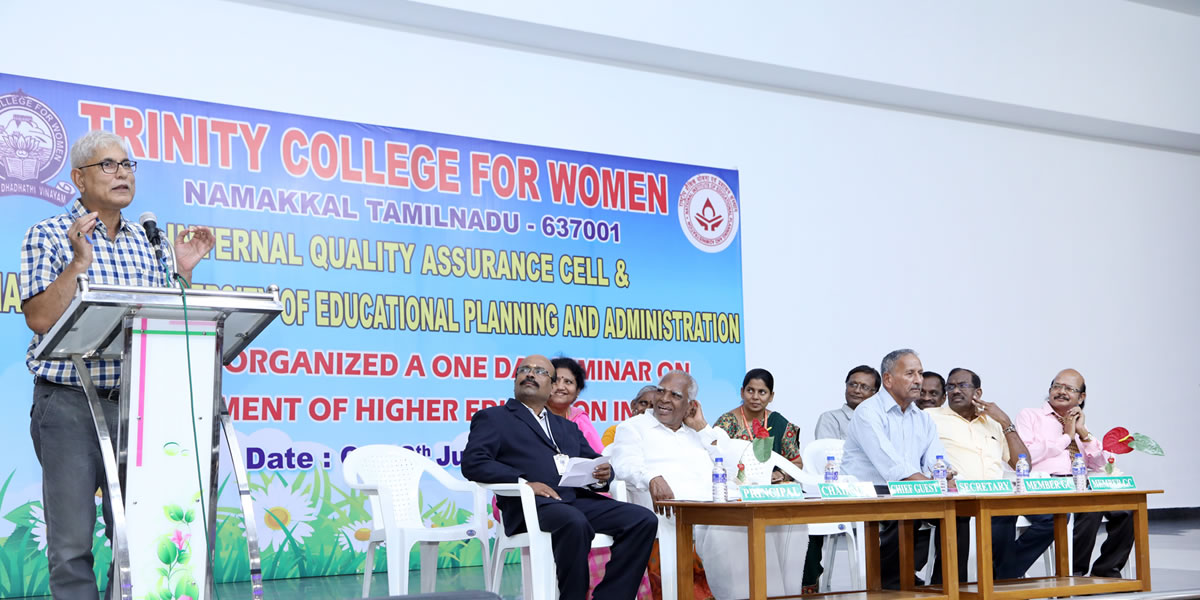 The Internal Quality Assurance Cell of Trinity College for Women, Namakkal and National University of Educational Planning and Administration, New Delhi jointly organized a one day seminar entitled “Development of Higher Education in India” on 12th July 2019.