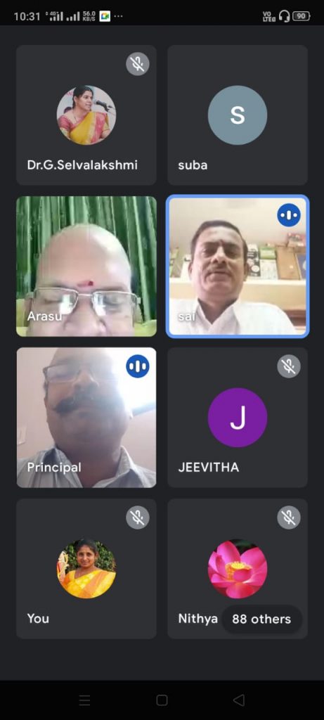 Mr. P.K. Sengodan, Chairman of the College, presided over the webinar. Er. K. Nallusamy, Secretary of the College offered his felicitation address. Dr. Arasuparameswaran, Director highlighted the usage of digital library. Dr. M. Selvi, Librarian of the College was introduced by the chief guest. The faculty members of the College Dr N. Elamathi, Mrs. S. Usharani, Dr. L. Tamilselvi, Mrs. P. Nandhini, Mrs. K. Gayathri, Mrs. A. Kavitha, Dr. R. Suba, Dr. R. Rupa, Mrs. K. Punitha, Mrs. P. Sathiya took part in that occasion. Mrs. R. Sakunthaladevi, Assistant Professor in Physics proposed the vote of thanks. More than 100 students took part in that online event.