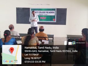 The Internal Quality Assurance Cell (IQAC), Trinity College for Women, Namakkal organized a one day interaction programme on 07.01.2023. In this regard, Dr. P. Maadeswaran, Assistant Professor in Energy Science & Technology, Periyar University, Periyar Palkalai Nagar, Salem delivered on the topic of “Documentation Process and Outline Management for NAAC Accreditation”. In his address, he spoke about the role of IQAC to enhance quality in higher educational institutions in a revised framework. He stressed on checking the quantitative and qualitative provisions which are an integral part of progressive education system. Dr. M.R. Lakshiminarayanan, Principal highlighted the want of team work, pinpoint planning of departmental visits, interactions with various associates and cultural programmes. Many participants cleared their doubts through the interaction programme. Dr. N. Elamathi, IQAC Coordinator pointed out the importance of best innovative practices of our Institution.
