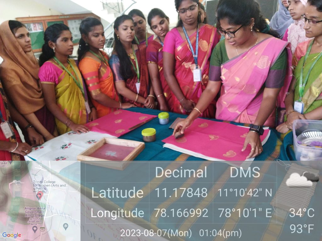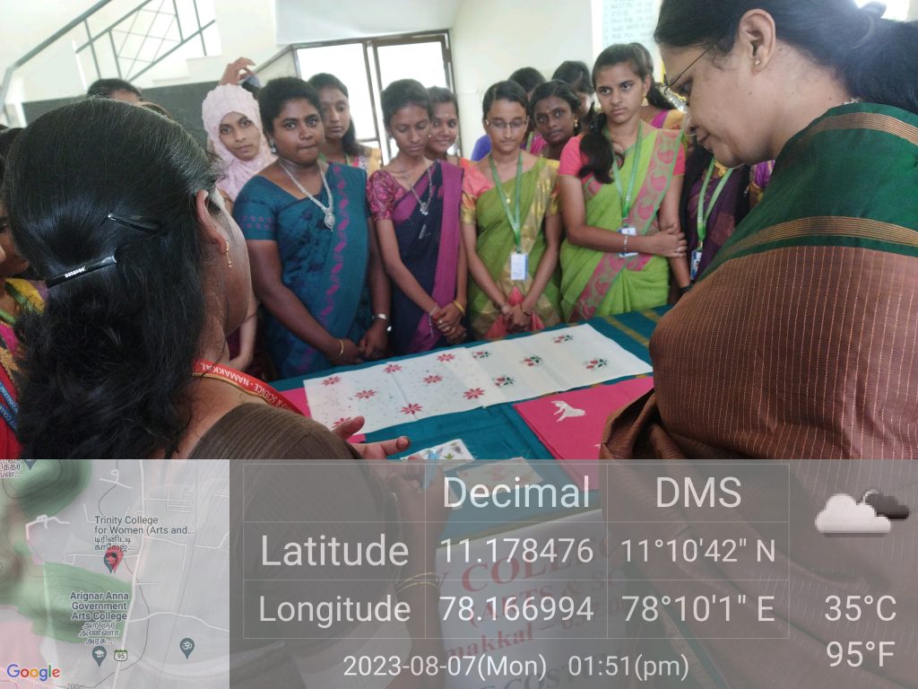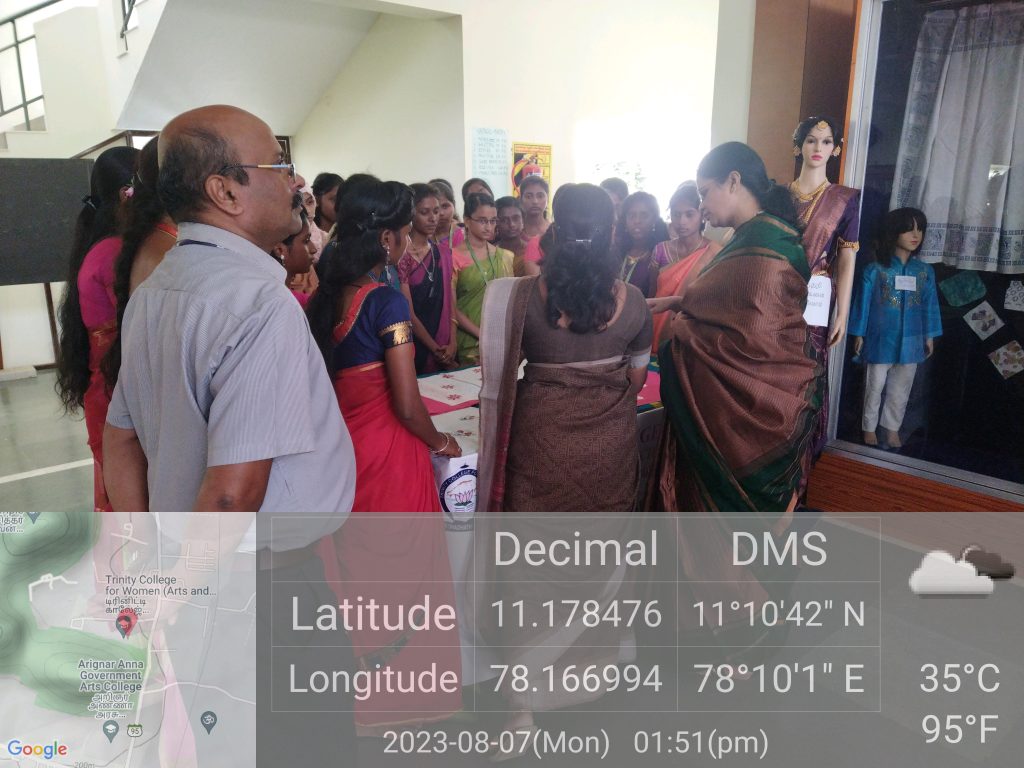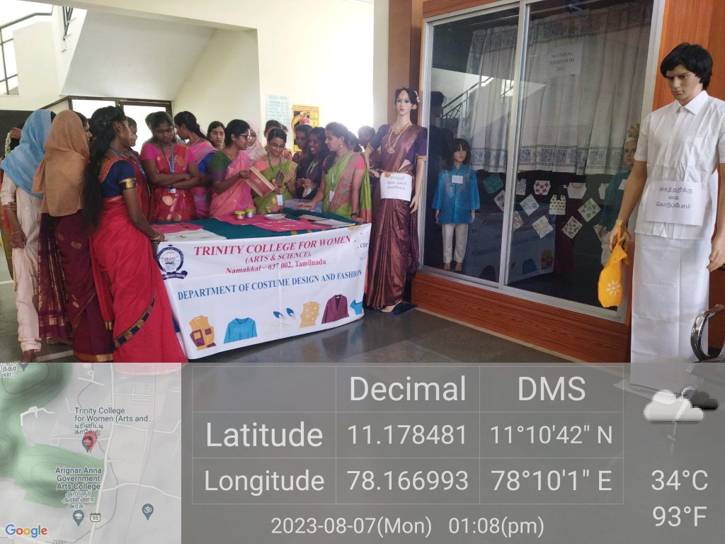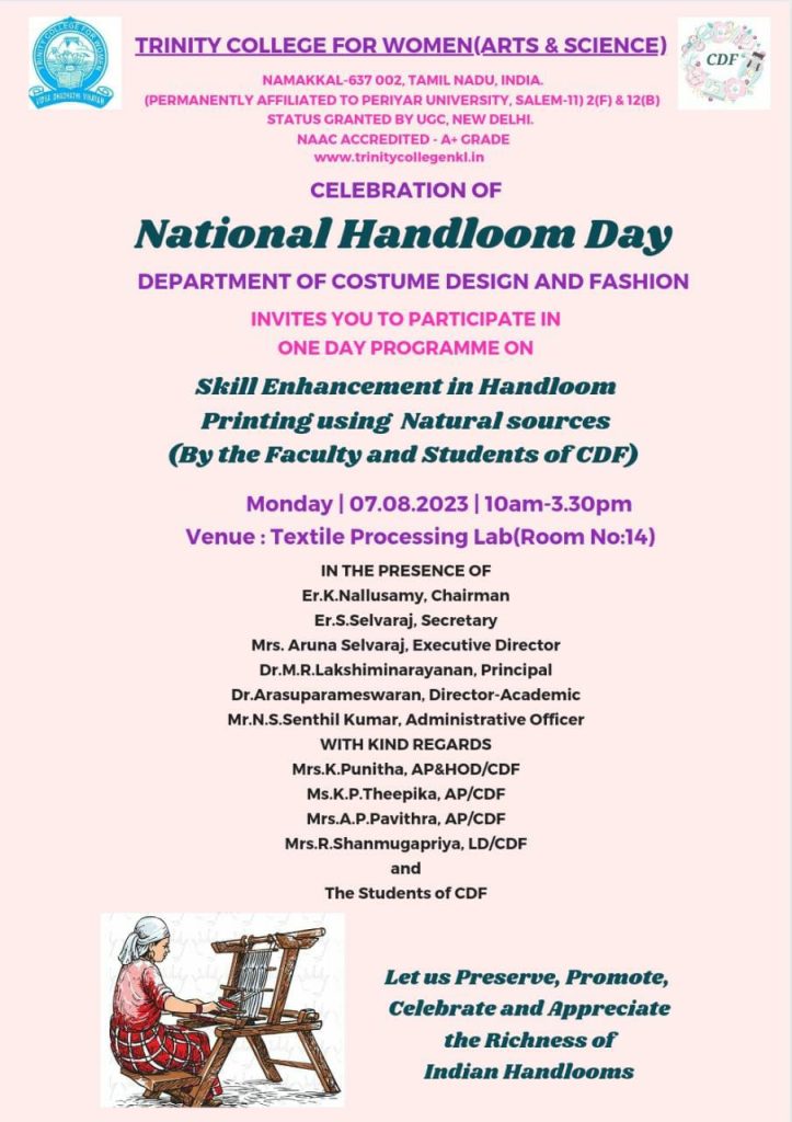 The National Handloom Day was observed at the Trinity College for Women, Namakkal, on August 7, 2023, under the department of Costume Design and Fashion.