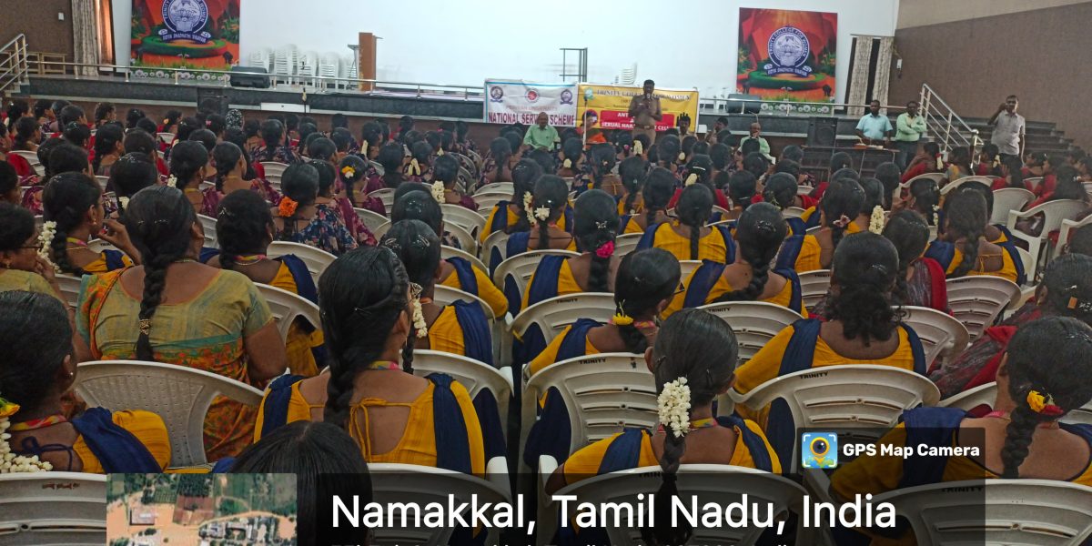 The National Service Scheme, in association with the Anti-Ragging & Sexual Harassment Cell, Trinity College for Women, Namakkal, conducted an awareness programme on “Kavalan SOS”, launching the programme on 26th March 2025 in the Trinity Auditorium.