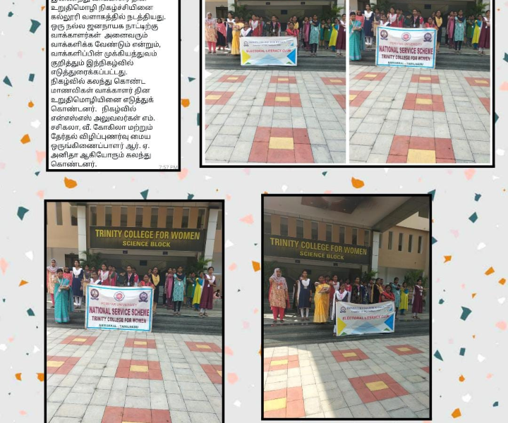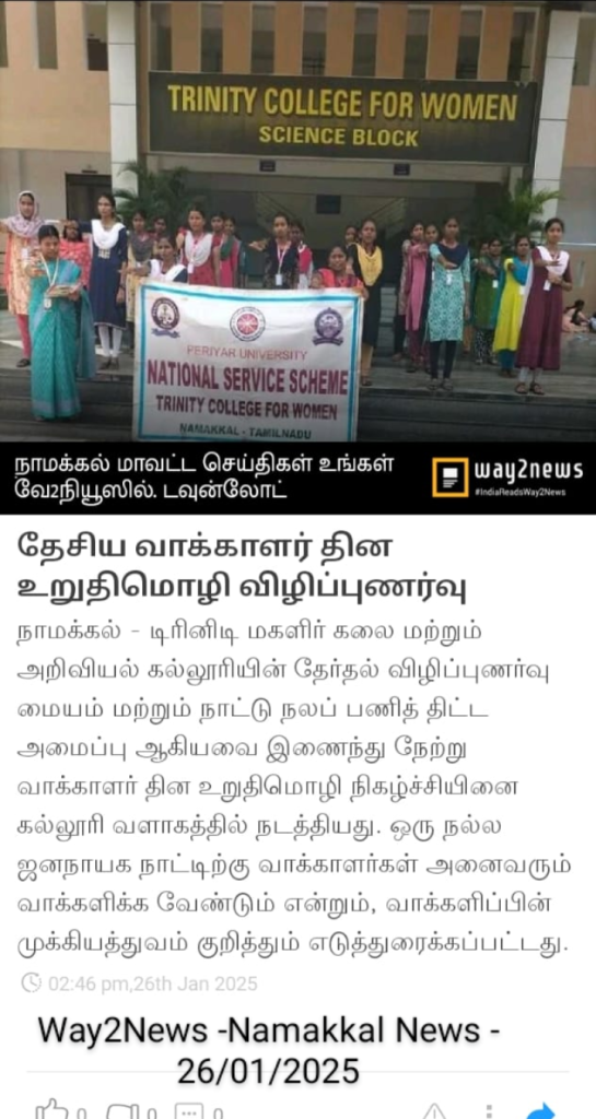 The National Voters Day was observed in our Trinity College for Women, Namakkal on 25th January 2025.