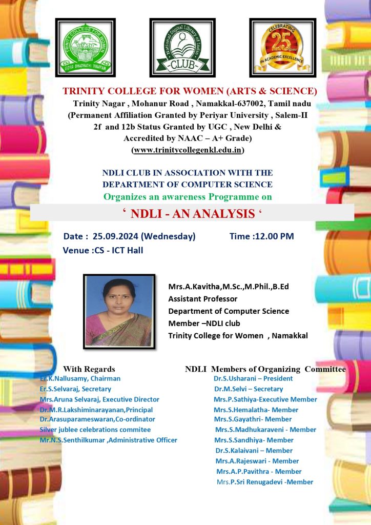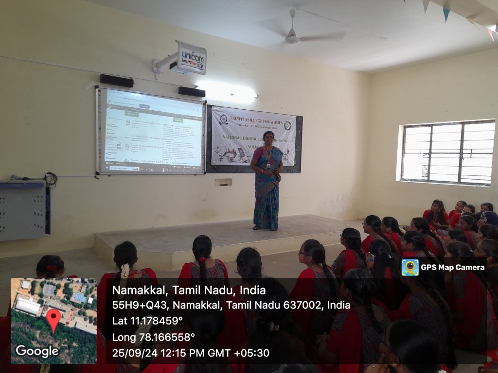 The NDLI club, in support of the department of Computer Science, Trinity College for Women, Namakkal conducted an awareness programme titled “NDLI – An analysis” on 25th September 2024