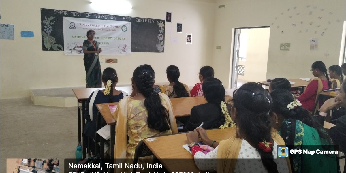 The NDLI Club, Trinity College for Women, Namakkal, conducted an awareness program titled “Digital Library: NDLI and its Contributions” on July 25, 2024.  Ms. P. Sri Renugadevi, Assistant Professor in Nutrition and Dietetics and Member of the NDLI Club, Trinity College for Women, Namakkal, was the resource person.