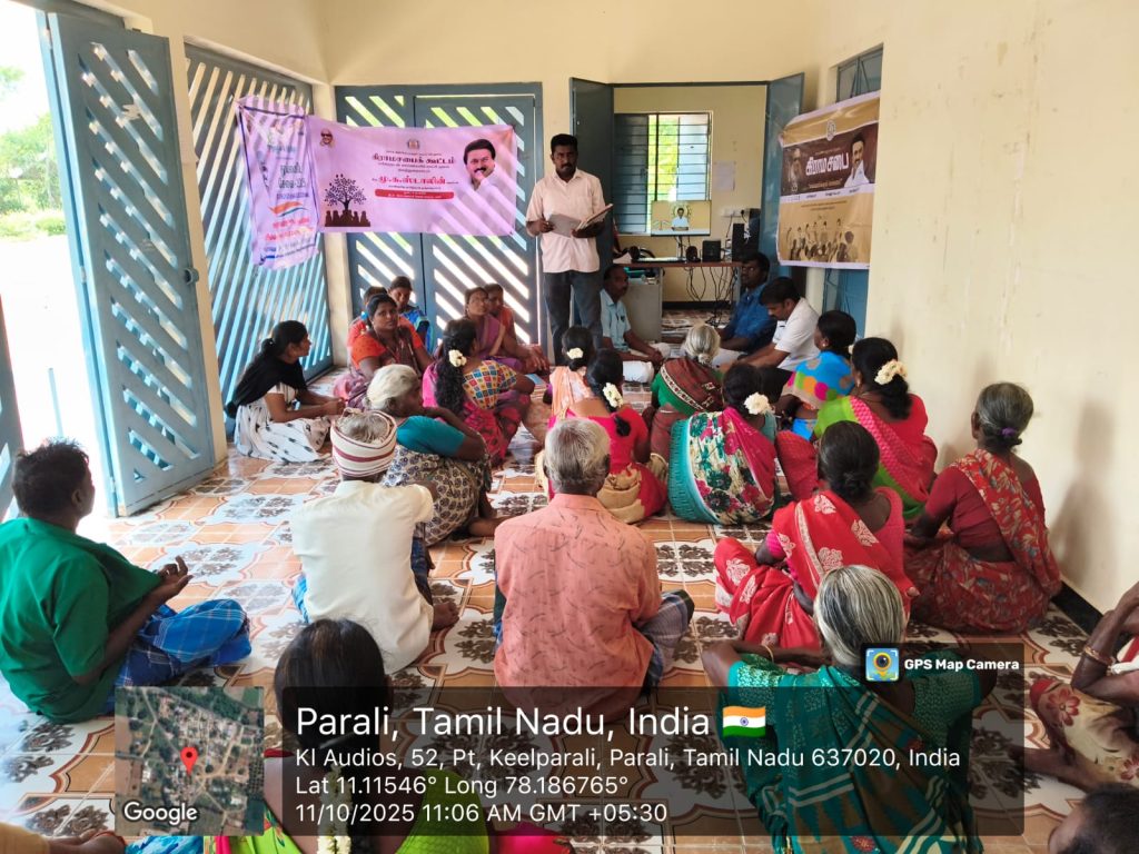 The nominated students, as well as UBA network villages (Aniyapuram, Parali, Tholur and Pettapalayam, Mohanur Taluk, Namakkal District) faculty representatives of Trinity College for Women, Namakkal (C9496) participated in the Gandhi Jayanthi Grama Sabha Meet held on 11th October 2025.