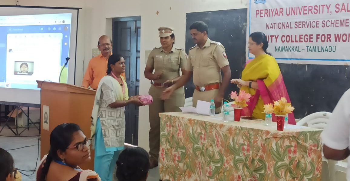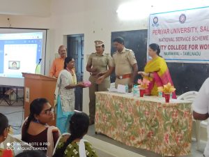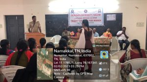 Mr R. Manivannan, Head Constable, Namakkal Town Police Station, The NSS Programme Officers Dr. M. Sasikala, The YRC Programme Officer Dr. R. Savithri, The NODAL Officer Ms. S. Poornima and also more than 250 students took part in that awareness programme.
