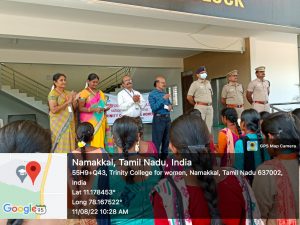 Mr. R. Sekar, Additional Superintendent of Police, Namakkal District, Mr. S. Suresh, Deputy Superintendent of Police, Namakkal Division, Mr. K. Sankarapandian, Inspector of Police, Namakkal Town, Mr. P.K. Sengodan,Chairman of the College, Er. K. Nallusamy, Secretary, Dr. M.R. Lakshiminarayanan, Principal, Dr. Arasuparameswaran, Director – Academic, The NSS Programme Officers Dr. M. Sasikala & Mrs. S. Jayamathi, The Administrative Officer Mr. N.S. Senthilkumar and Mrs. V. Archana, Directress of Physical Education participated in that programme.