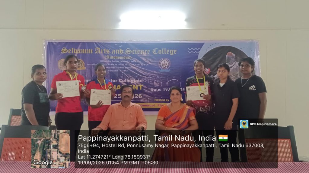 The Periyar University Inter-Collegiate Fencing Women Tournament (2025-2026) was held in the premises of Selvamm Arts and Science College (Autonomous), Namakkal on 19.09.2025.