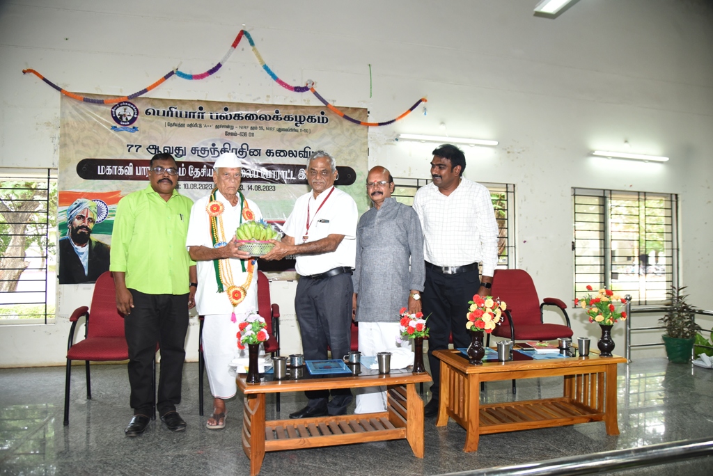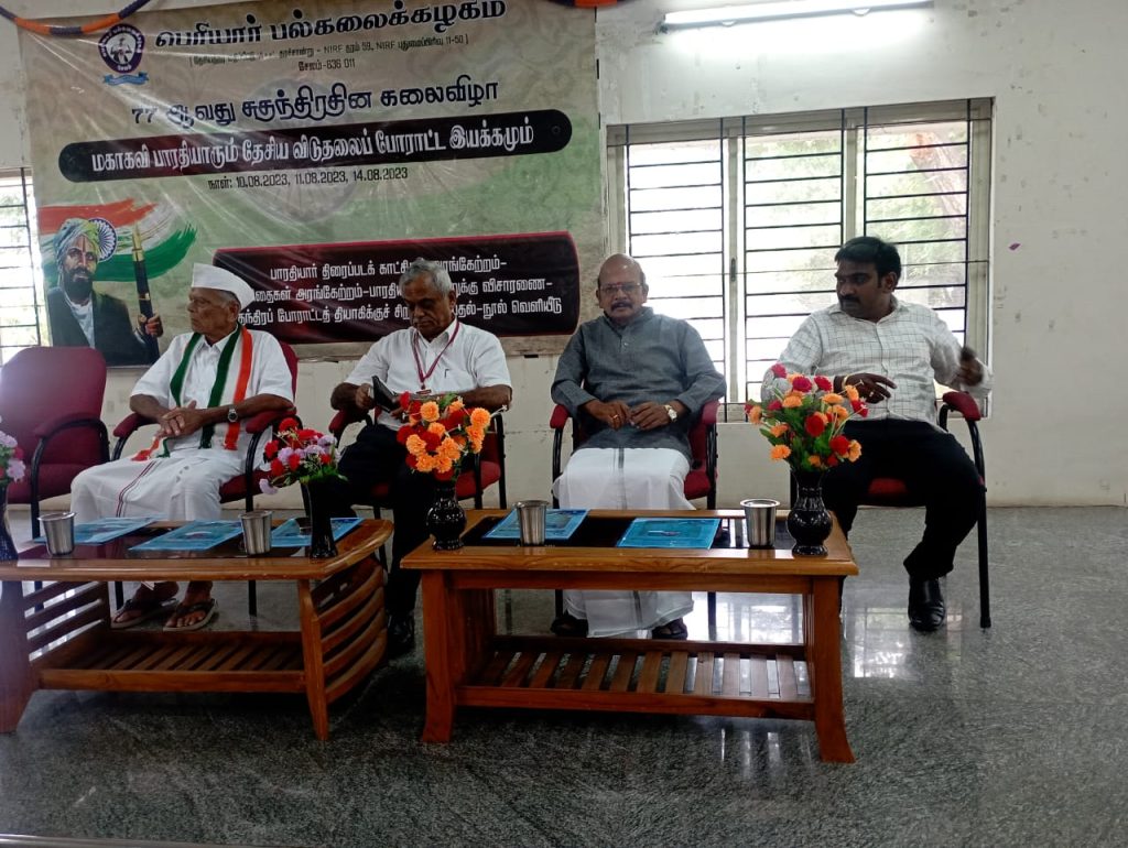 The Periyar University, Salem, conducted an event with the title of “Mahakavi Bharathiar and the National Liberation Movement” (மகாகவி பாரதியாரும் தேசிய விடுதலைப் போராட்ட இயக்கமும்) on August 10, 2023. Owing to the Art Fest on the 77th Independence Day, this programme was organised by the University officials.