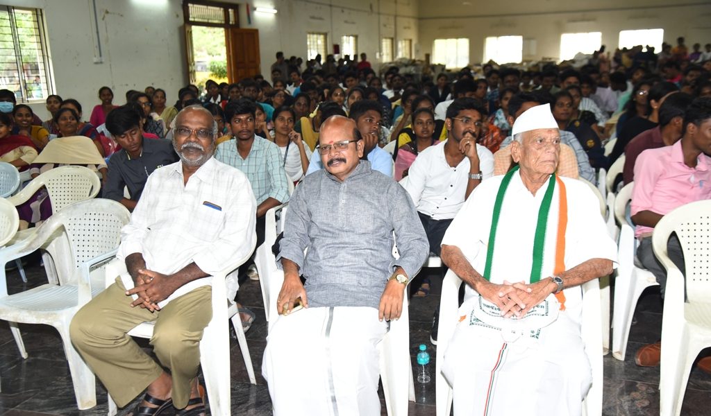 Dr. Arasuparameswaran, Director, Academic, Trinity College for Women, Namakkal, was one of the special invitees. In this event, free fighter Mr. N.K. Perumal, Dharmapuri (Martyr of the Quit India Movement – வெள்ளையனே வெளியேறு இயக்க போராட்ட தியாகி), was honoured. Apart from this, Mr. S. Ilaindhiraiyan’s book on Sivakami Ammal  -( இந்திய தேசிய ராணுவத்தில் சிவகாமியம்மாள்) in the Indian National Army was reviewed in that programme.