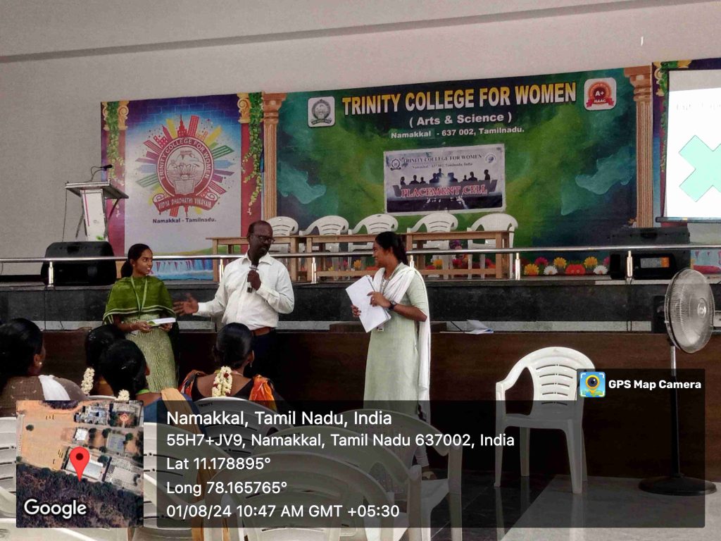 The Placement Cell, Internal Quality Assurance Cell and Institution’s Innovation Council, Trinity College for Women, Namakkal and GTT Foundation, supported by Barclays, Pune, Maharashtra, jointly conducted a five -day programme titled “Success of interview techniques and soft skills” from 29th July 2024 to 02nd August 2024 in the College campus.