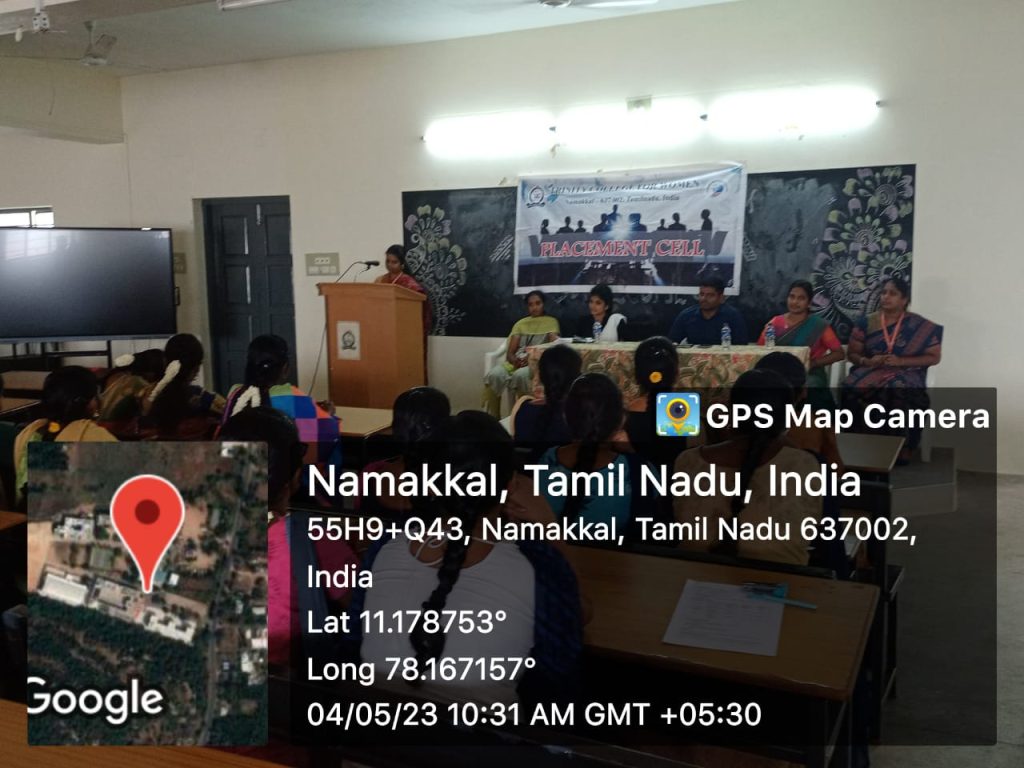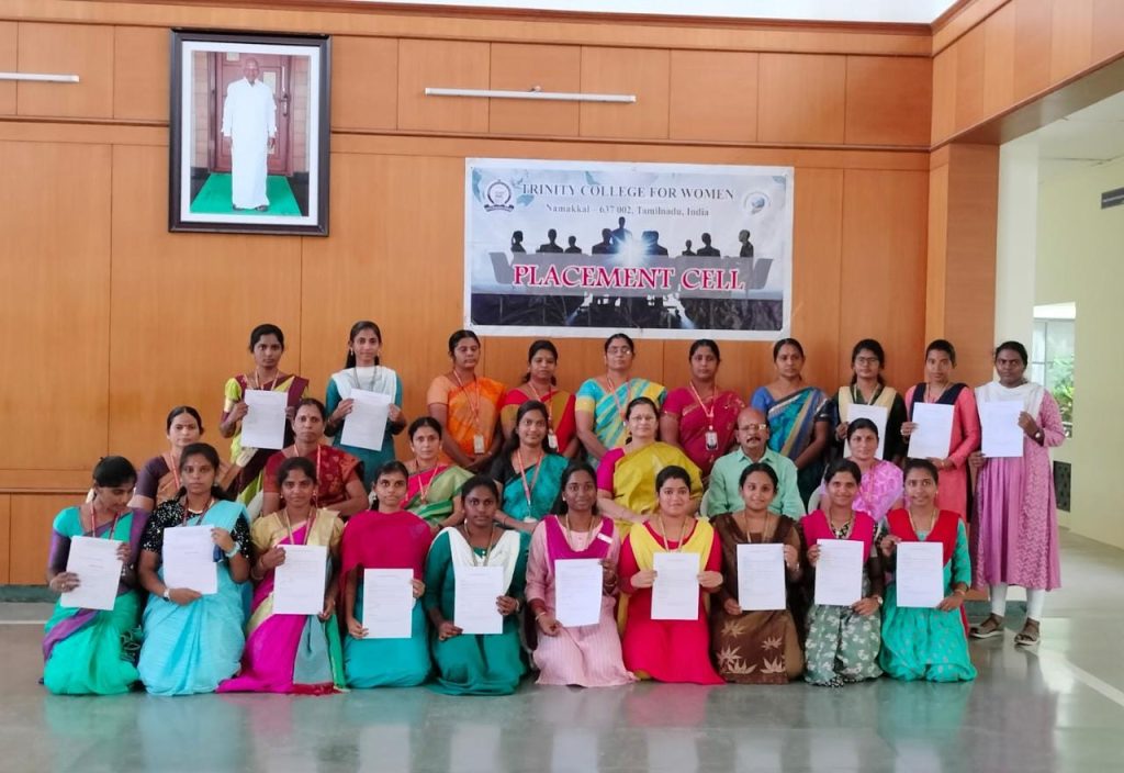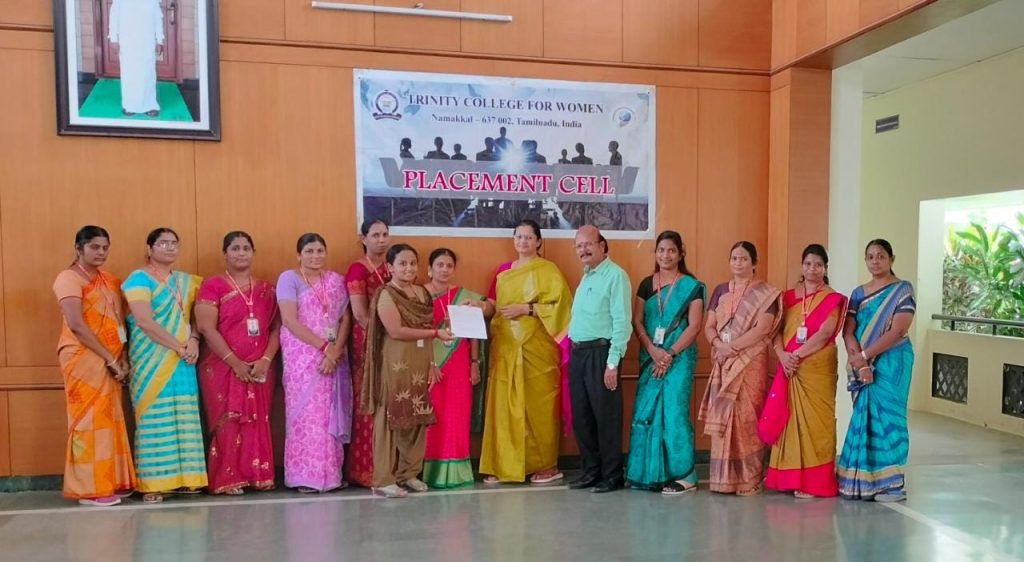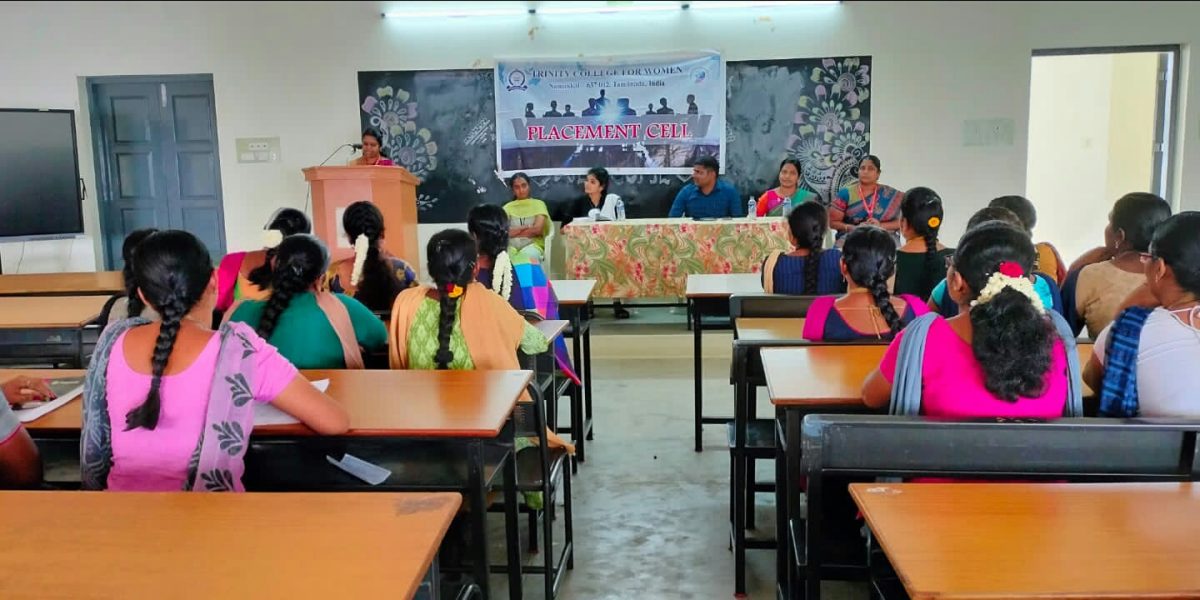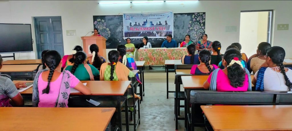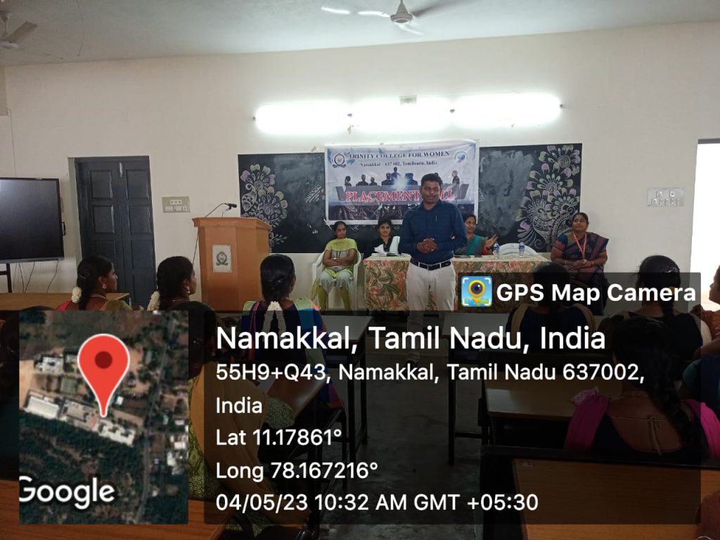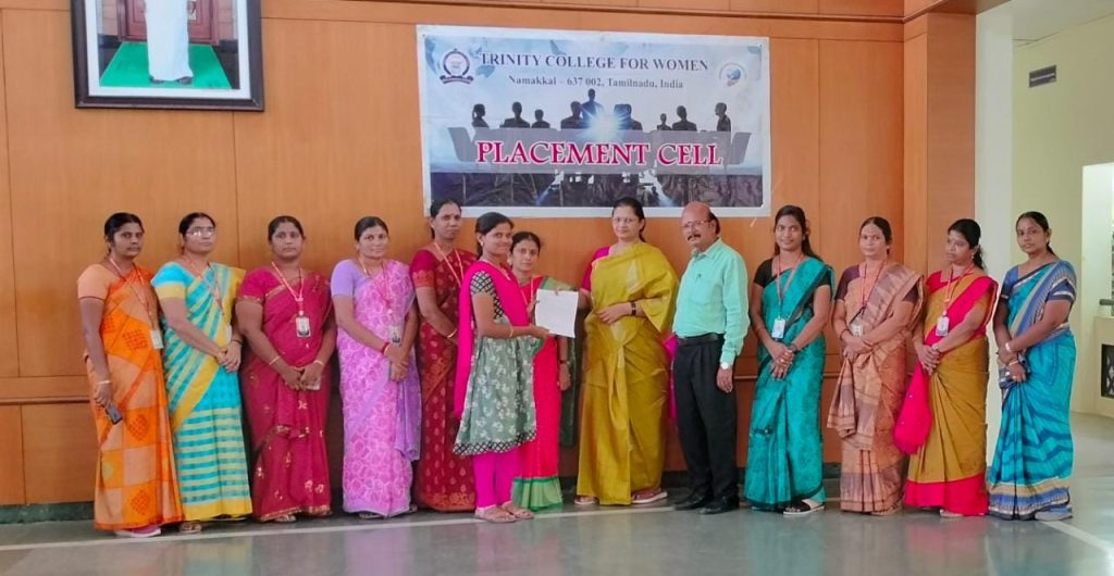 The Placement Cell of Trinity College for Women in association with M/s. B.N. Rathi Securities Ltd, Namakkal conducted a campus Interview on 04.05.2023 (Thursday) @ 11 AM on our college campus. In this regard, nearly 200 final year students from both UG and PG took part. Mr. R. Balakumar, Vice President of South Head, Ms. G. Devishri, Team Leader and Ms. D. Thamayanthi, Team Leader, M/s. B.N. Rathi Securities Ltd., Namakkal and his subordinates of the concern were the special invitees. They selected the students through the written test, group discussion and personal interview. Nearly 100 final year post-graduate students actively participated.