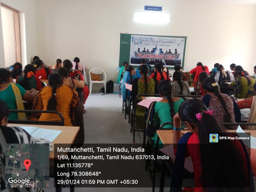 Dr. B. Lakshmi, Placement Cell Officer and the members of Placement Cell, Trinity College for Women, Namakkal made arrangements.