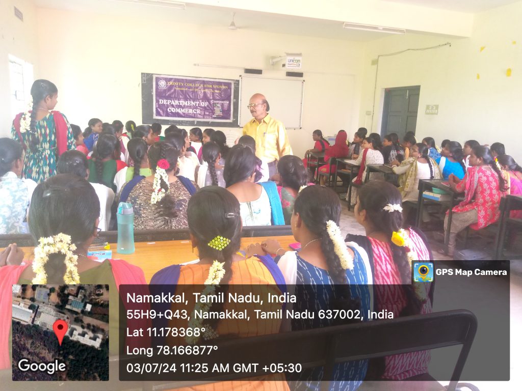 The postgraduate and Research department of Commerce, Trinity College for Women, Namakkal conducted the motivational programme for the benefit of first year B.Com., and B.Com., CA students on 03rd, 04th and 05th July 2024