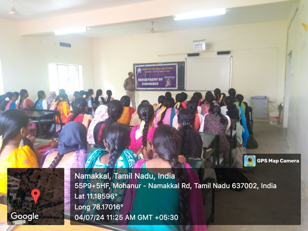 The postgraduate and Research department of Commerce, Trinity College for Women, Namakkal conducted the motivational programme for the benefit of first year B.Com., and B.Com., CA students on 03rd, 04th and 05th July 2024.