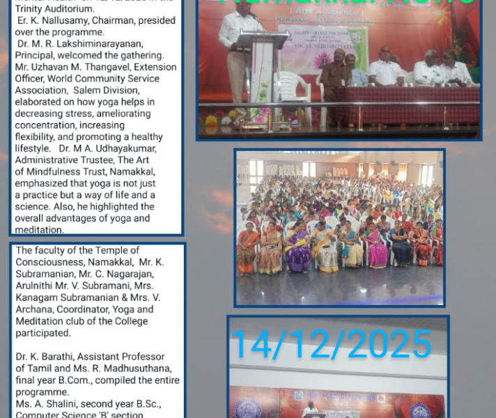 The Postgraduate and Research Department of Tamil, Trinity College for Women, Namakkal, celebrated the eminent Tamil poet Mahakavi Subramaniya Bharathiyar’s 144th birth anniversary on 11th December 2025 in the College premises.