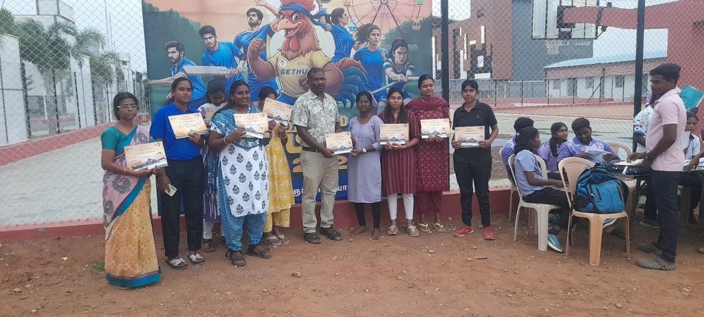 02Ms. S. KiruthigaFinal year B.Sc., Computer ScienceTug of War Carrom (Doubles) Athletics – 100 M First Place Third Place Actively took partRs. 3000 Rs. 1000  Rs. 4000