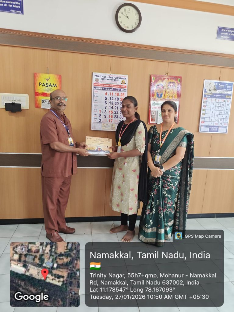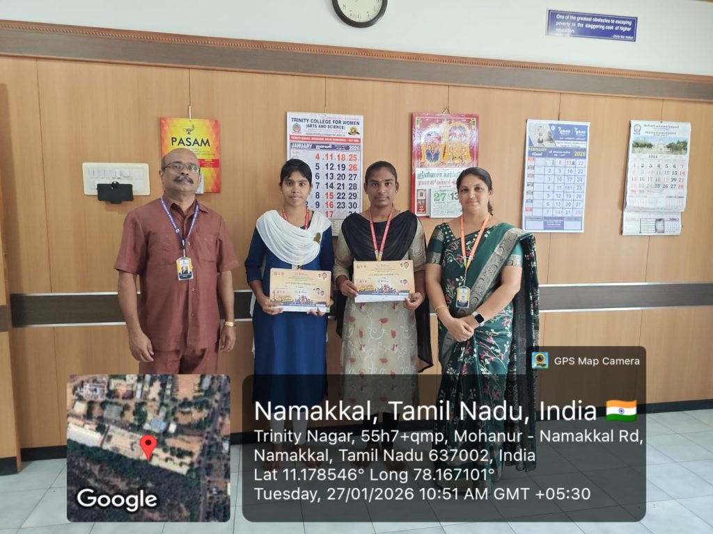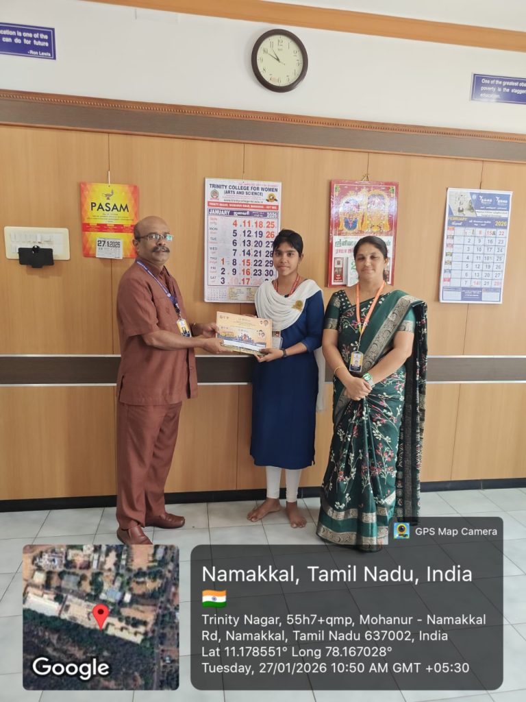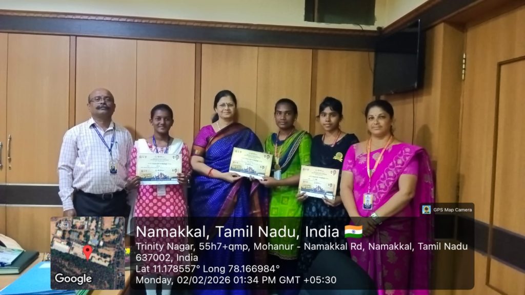 The above said students of Trinity College for Women are greeted by Er. K. Nallusamy, Er. S. Selvaraj, Secretary, Mr. Aruna Selvaraj, Executive Director, Dr. M.R. Lakshiminarayanan, Principal, Dr. R. Navamani, Vice-Principal, Mr. N.S. Senthilkumar, Administrative Officer,  Mrs. V. Archana, Director of Physical Education and the faculty members of Computer Science on 02.02.2026 in the College premises.