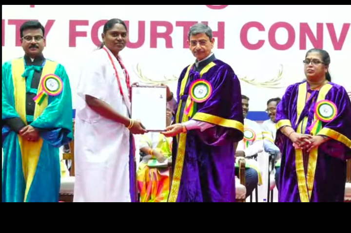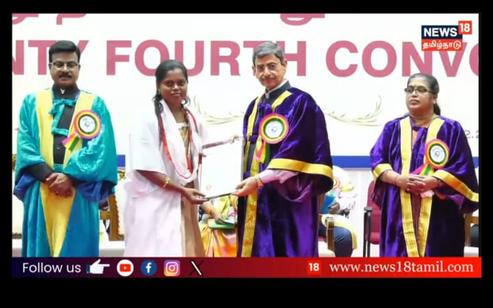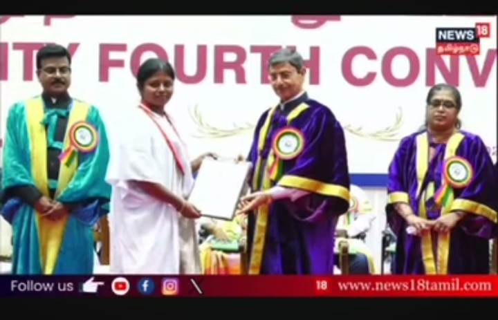 On this subject, the Gold Medalist (First Rank Holder) of M.A., English, Ms. S. Priyanka, Trinity College for Women, Namakkal, obtained the Degree Certificate from the Honourable Governor.