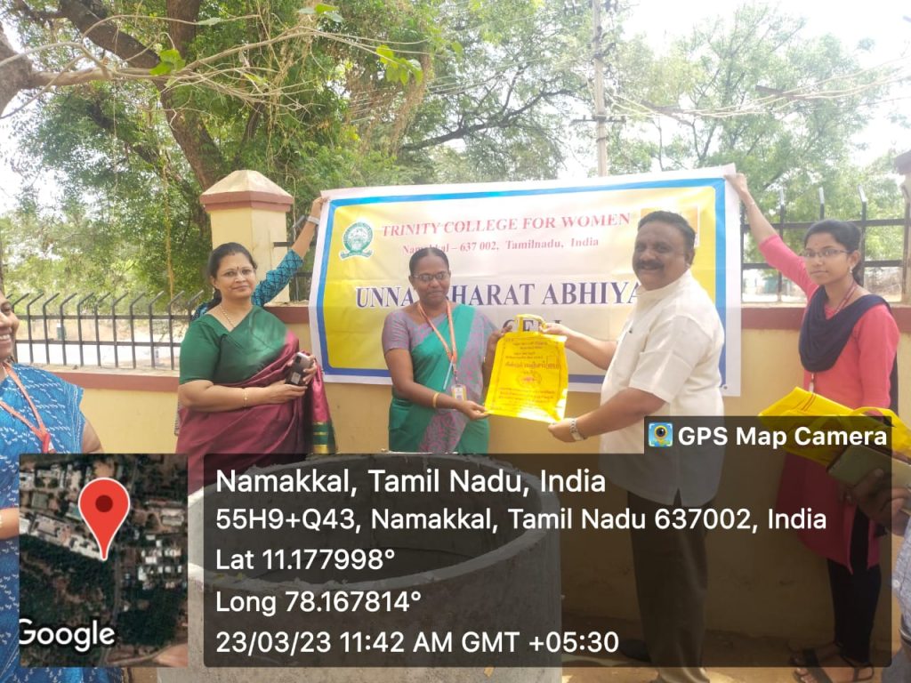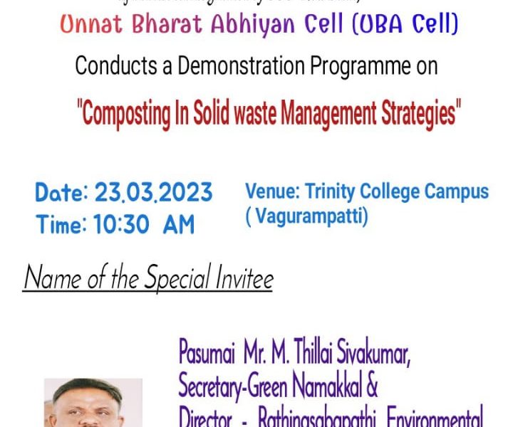 The UBA Cell (Unnat Bharat Abhiyan Cell) of Trinity College for Women, Namakkal organized a demonstration programme entitled “Composting in solid waste management strategies” on 23rd March 2023.