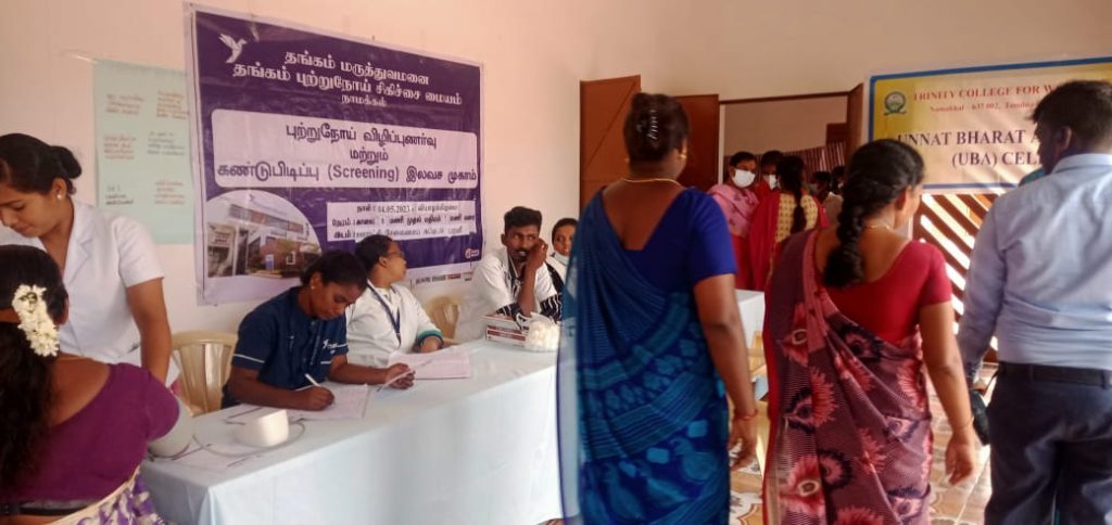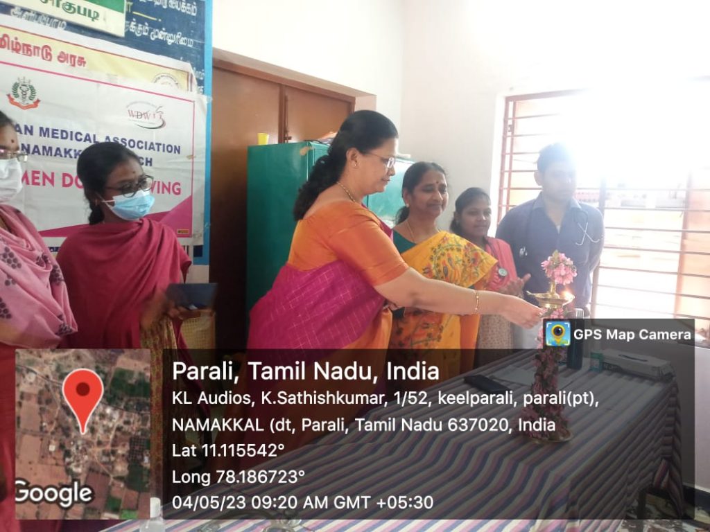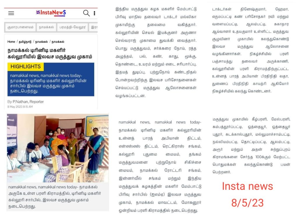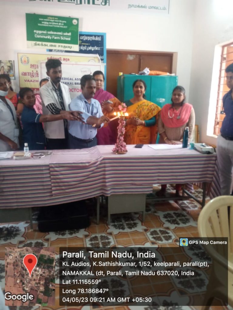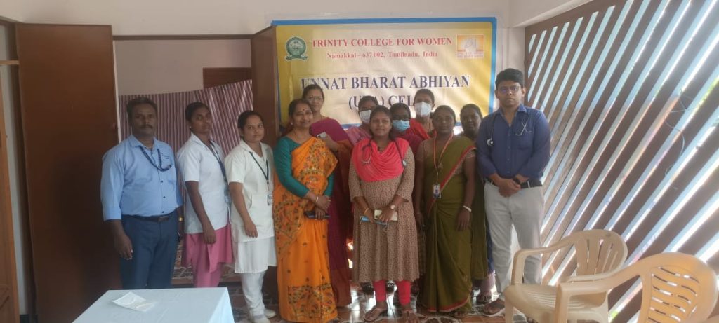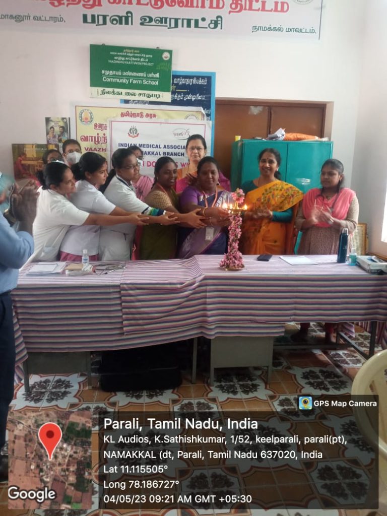 The Unnat Bharat Abhiyan Cell in association with the National Service Scheme, Youth Red Cross, Red Ribbon Club and Institution’s Innovation Cell of Trinity College for Women, Namakkal, Thangam Hospitals and Cancer Centre, Namakkal, Rotary Club, Namakkal, Inner Wheel Club, Namakkal and Women Empowerment Standing Committee, Indian Medical Association, Tamil Nadu state Branch organized a free medical camp in the UBA adopted village of Parali (Mohanur Panchayat Union, Valayapatti Via, Namakkal District) on 04.05.2023.