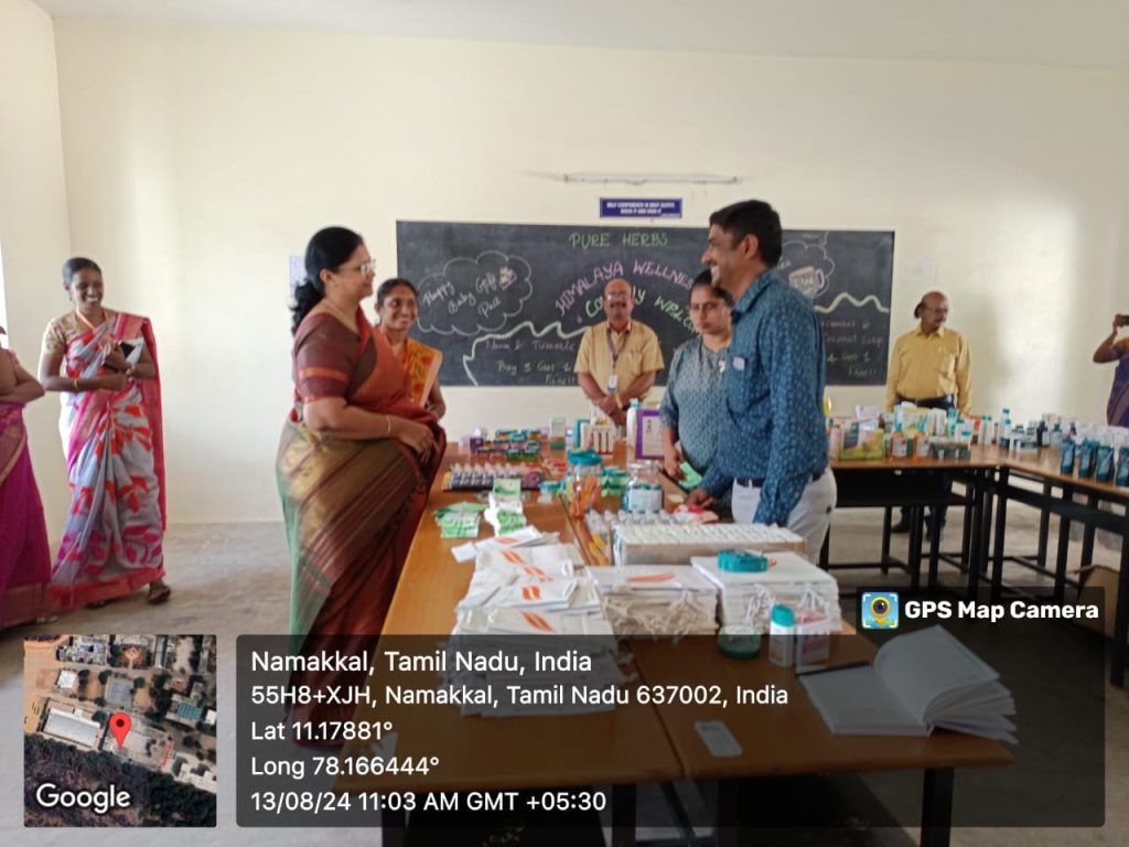 Mr. P. Satheeshkumar, Franchise – Himalaya Wellness Company, Sri Murugan Agency, 6, Perunthalaivar Kamarajar Shop, Paramathi Road, Namakkal, was the special invitee. He highlighted the significance of natural products for our healthy life. The various Himalaya natural products like pharmaceuticals, personal care, baby care, wellness, animal health, nutrition, sanitiser, toothpaste, face powder, soaps, health care, hair oil and other organic products were exhibited.