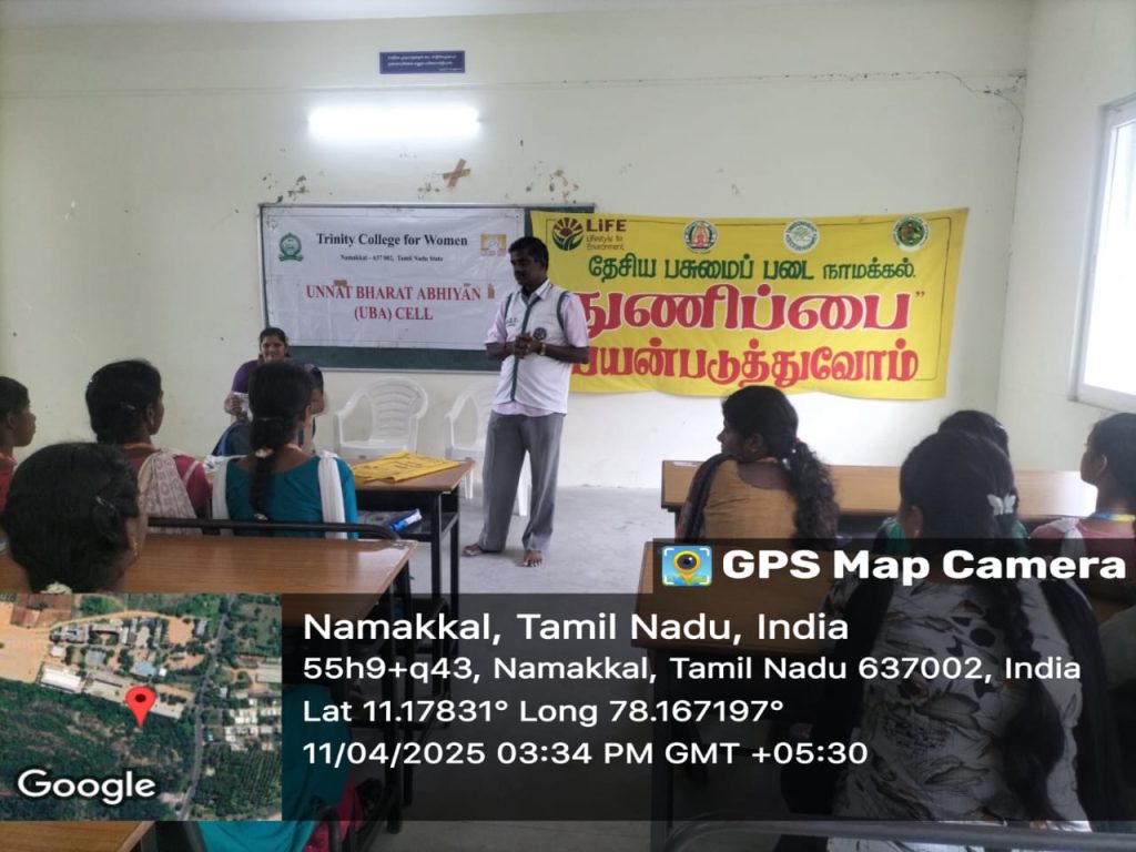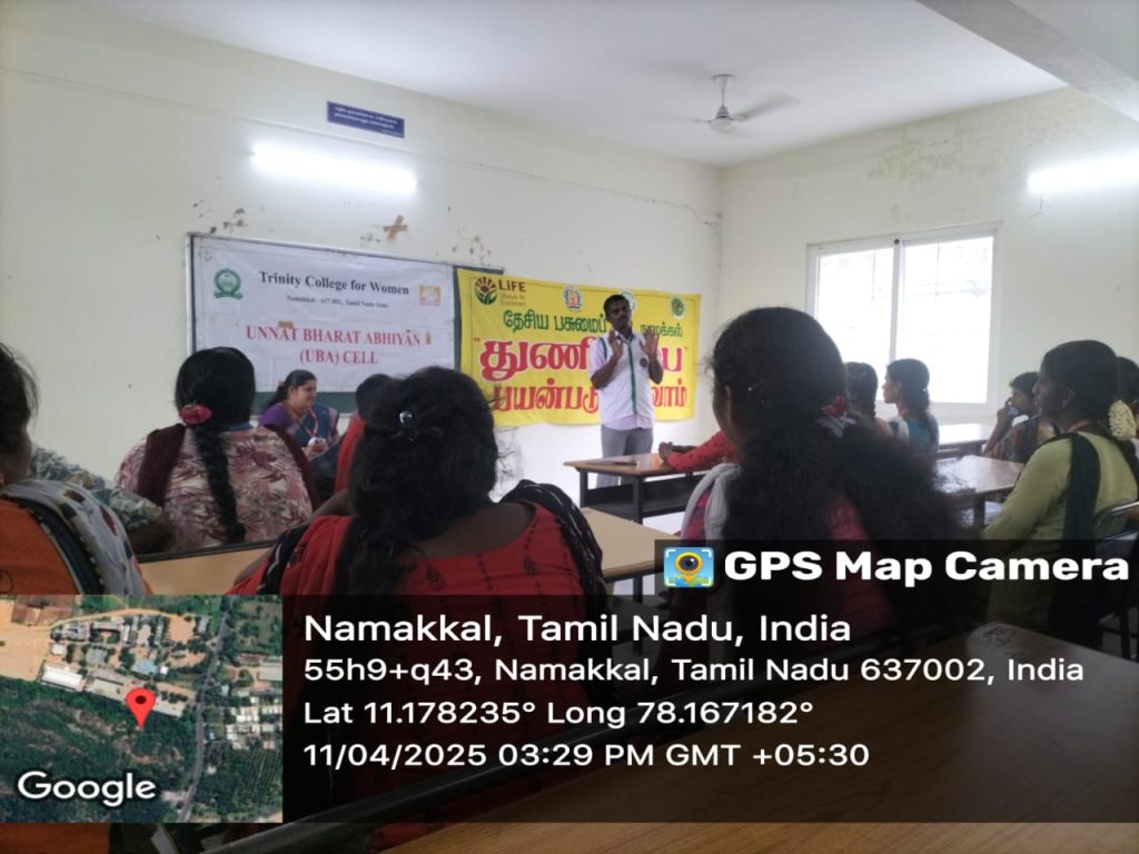 Mrs. S. Hemalatha, Coordinator, Unnat Bharat Abhiyan Cell, Trinity College for Women, Namakkal, made arrangements.