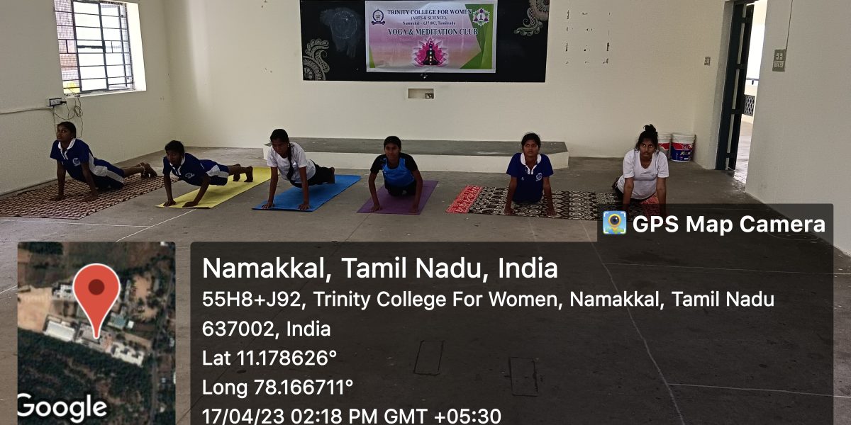 The Yoga and Meditation Club with the support of the department of Physical Education, Trinity College for Women, Namakkal conducted a one day yoga and meditation programme entitled ““How do we practice Kriya Yoga? & a view on advanced Yoga Asanas”? (கிரியா யோகா பயிற்சியினை நாம் எவ்வாறு மேற்கொள்ளவேண்டும் ? & மேம்படுத்தப்பட்ட யோகாசனங்கள் குறித்த ஒரு மீள்பார்வை) on 17.04.2023.