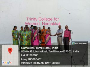 - The Youth Red Cross of Trinity College for Women, Namakkal in association with Primary Health Centre, Konur, Namakkal District organized the National Deworming Day Awareness Programme. The YRC volunteers actively took part in the national Deworming Day Awareness Programme on 21stSeptember 2022 at the campus of Trinity College for Women.