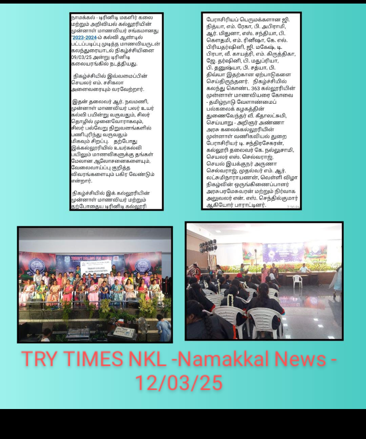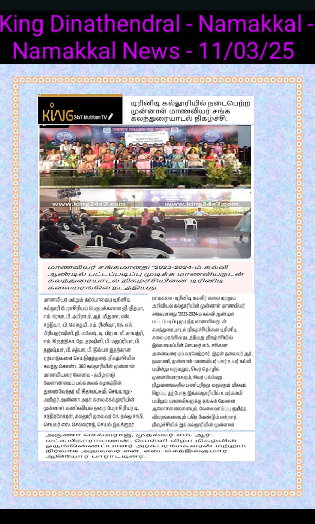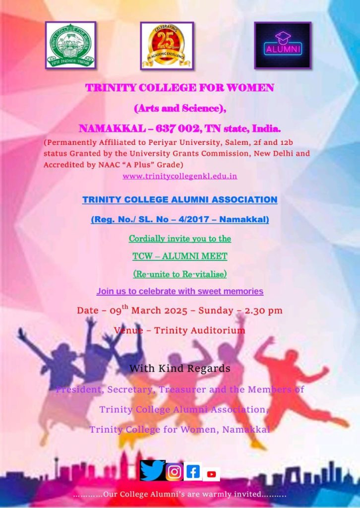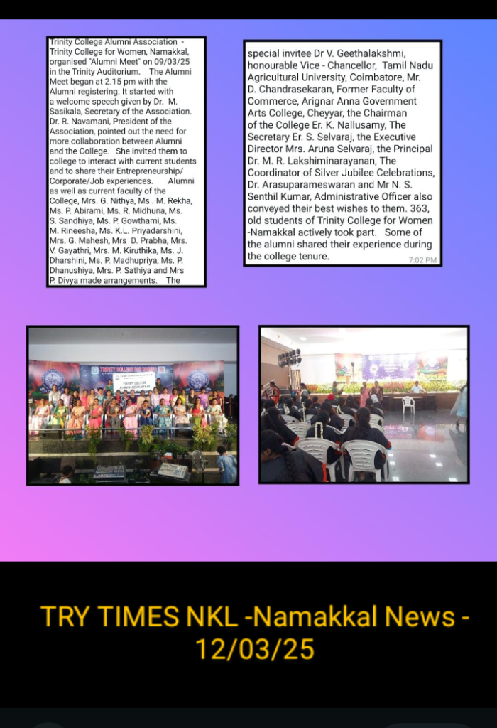 Trinity College Alumni Association of Trinity College for Women, Namakkal conducted “Alumni Meet” on 09th March 2025 in the Trinity Auditorium.