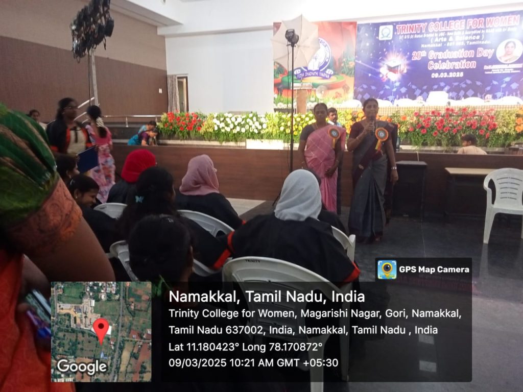 Mrs. G. Nithya, Treasurer, the members of the Trinity College Alumni Association, Ms. M. Rekha, Mrs. P. Abirami, Mrs. R. Midhuna & Ms. P.L. Sonia (Department of English), Mrs. S. Madhukaraveni & Mrs. A. Thenmozhi (Department of Mathematics), Mrs. S. Sandhiya & Mrs. P. Gowthami (Department of Physics), Ms. M.Rineesha, Ms. K.L. Priyadharshini & Mrs. G. Mahesh (Department of Chemistry), Mrs. D. Prabha, Mrs. V. Gayathri, Mrs. M. Kiruthika and Ms. J. Dharshini (Department of Computer Science), Ms. P. Madhupriya and Ms. P. Dhanushiyam (Commerce), Mrs. P. Sathiya (Assistant Library) and Mrs. P. Divya (Office Receptionist) also took part.