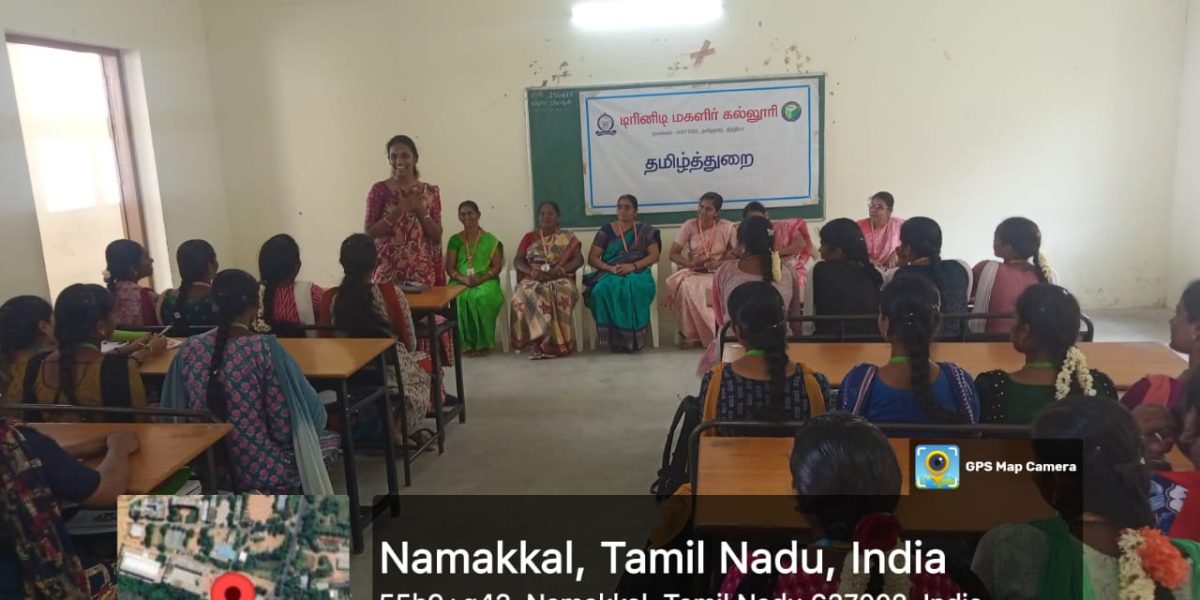 Trinity College Alumni Association, the Institution’s Innovation Council and Internal Quality Assurance Cell, in support of the department of Tamil, Trinity College for Women, Namakkal conducted a programme titled “Languages are both acquired and learned” on 27th March 2025. Ms. R. Thavanithi, Tamil Teacher, SPIRO PRIME Public School, Ernapuram, Namakkal (Alumni of Trinity College for Women – B.A., & M.A., Tamil – 2019-2024) was the special invitee.