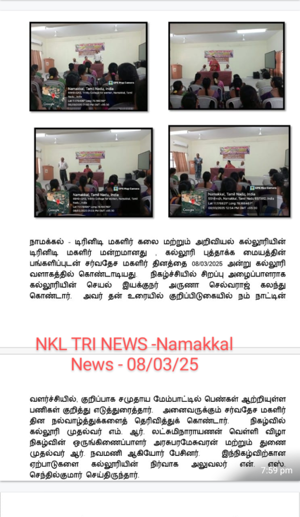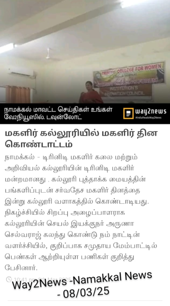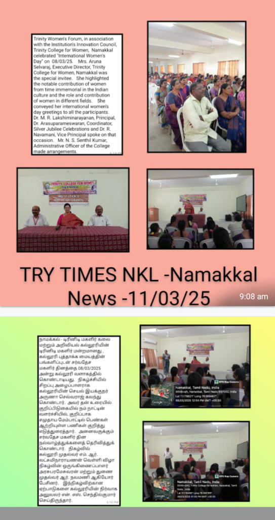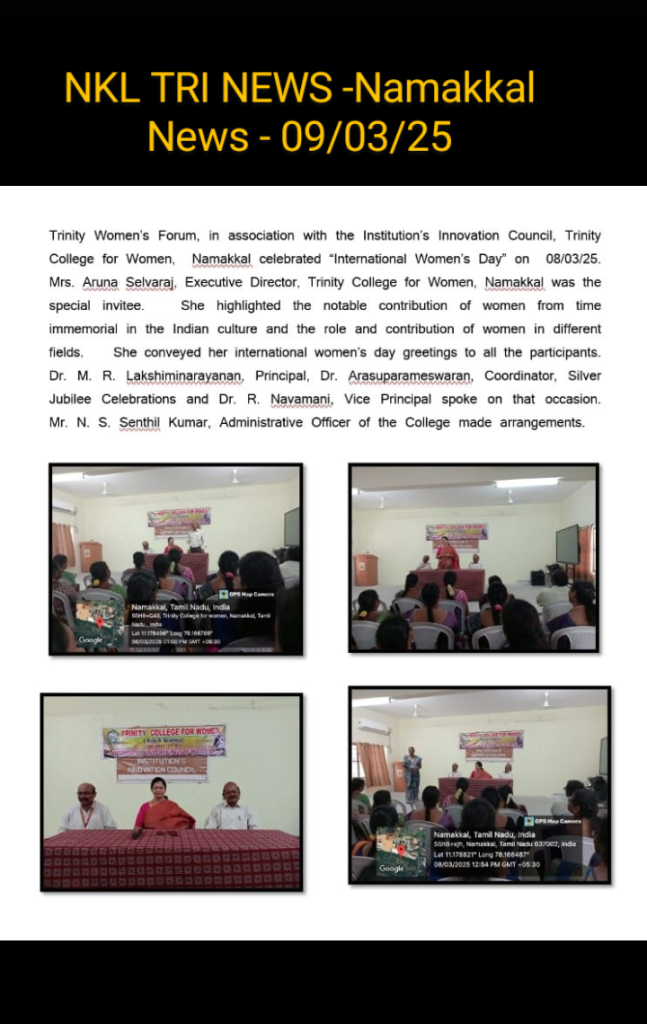 Dr. N. Thangamani and Mrs. R. Rupa, Co-ordinators of Trinity Women’s Forum, made arrangements.