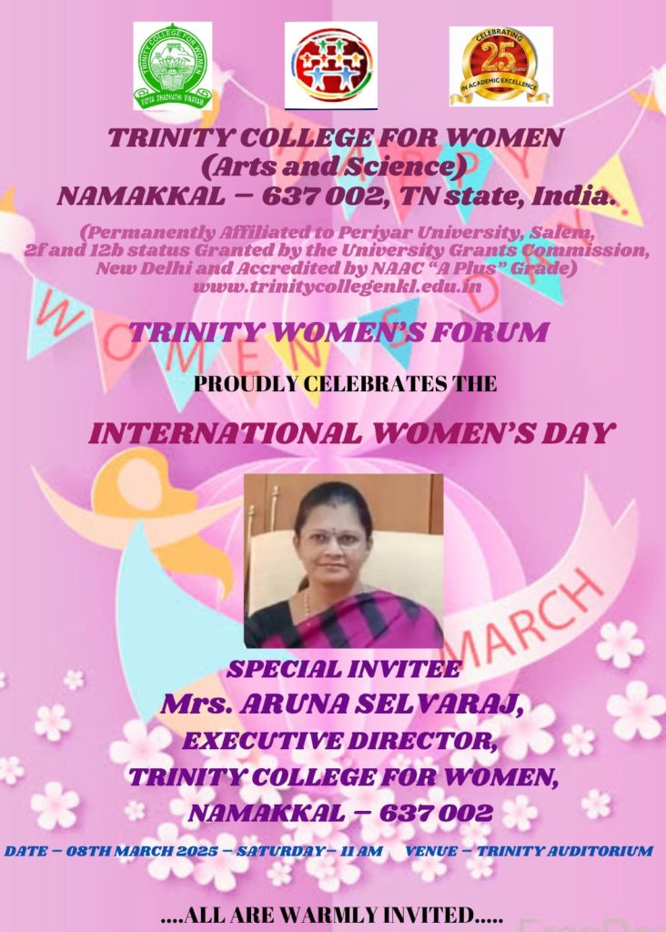 Trinity Women’s Forum, Trinity College for Women (Arts and Science), Namakkal, celebrated World Women’s Day on 08th March 2025 on the college campus.