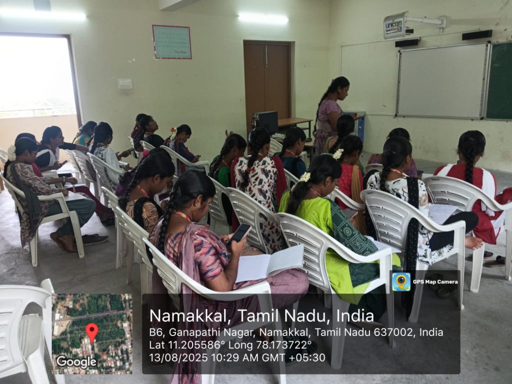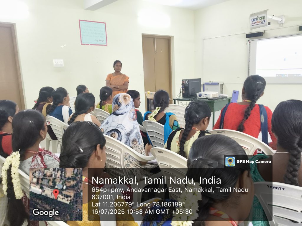 The Coordinator of Naan Mudhalvan, Dr. B. Vishnupriya, The Adjacents, Dr. K. Gowrimala, Mrs. D. Prabha, the members of Naan Mudhalvan, Mrs. K. Padmavathi (Tamil), Ms. S. Kavya (English), Mrs. S. Madhukaraveni (Mathematics), Dr. R. Sakunthaladevi (Physics), Dr. S. Kalaivani (Chemistry), Mrs. V. Gayathri (Computer Science), Mrs. A. Rajeswari (Commerce), Ms. P. Sri Renugadevi (Nutrition and Dietetics) and Ms. R. Vijayaprabha (Costume Design and Fashion) made arrangements.