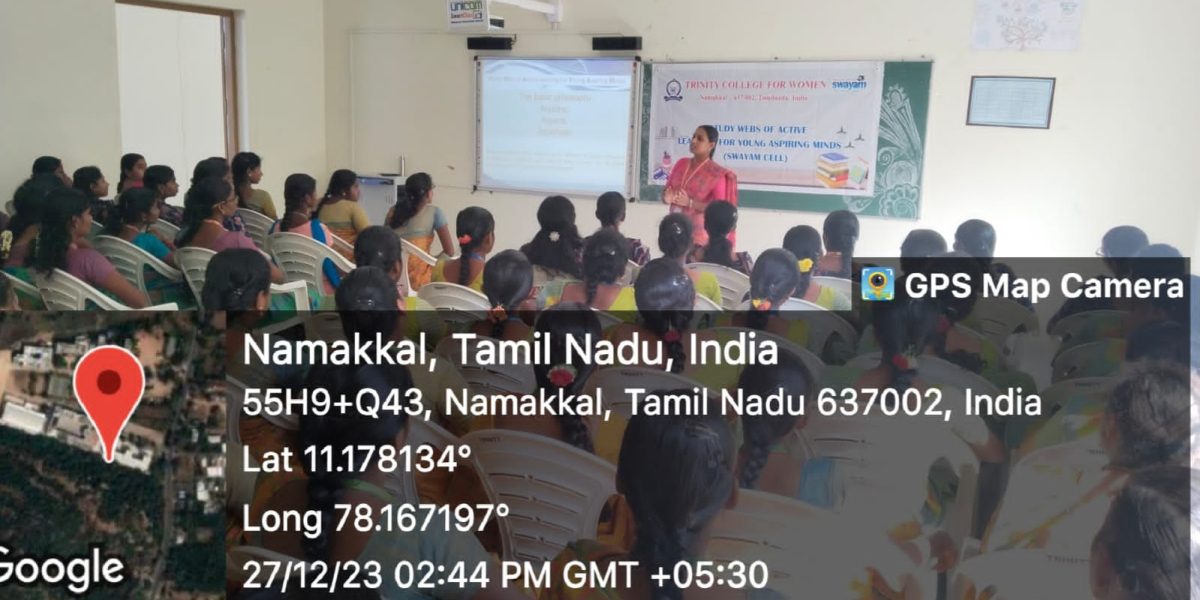 Under the auspices of SWAYAM Cell, Trinity College for Women, Namakkal conducted an awareness programme titled “SWAYAM Courses: Giving Chances and Opportunities for lifelong Learning” on December 27, 2023.