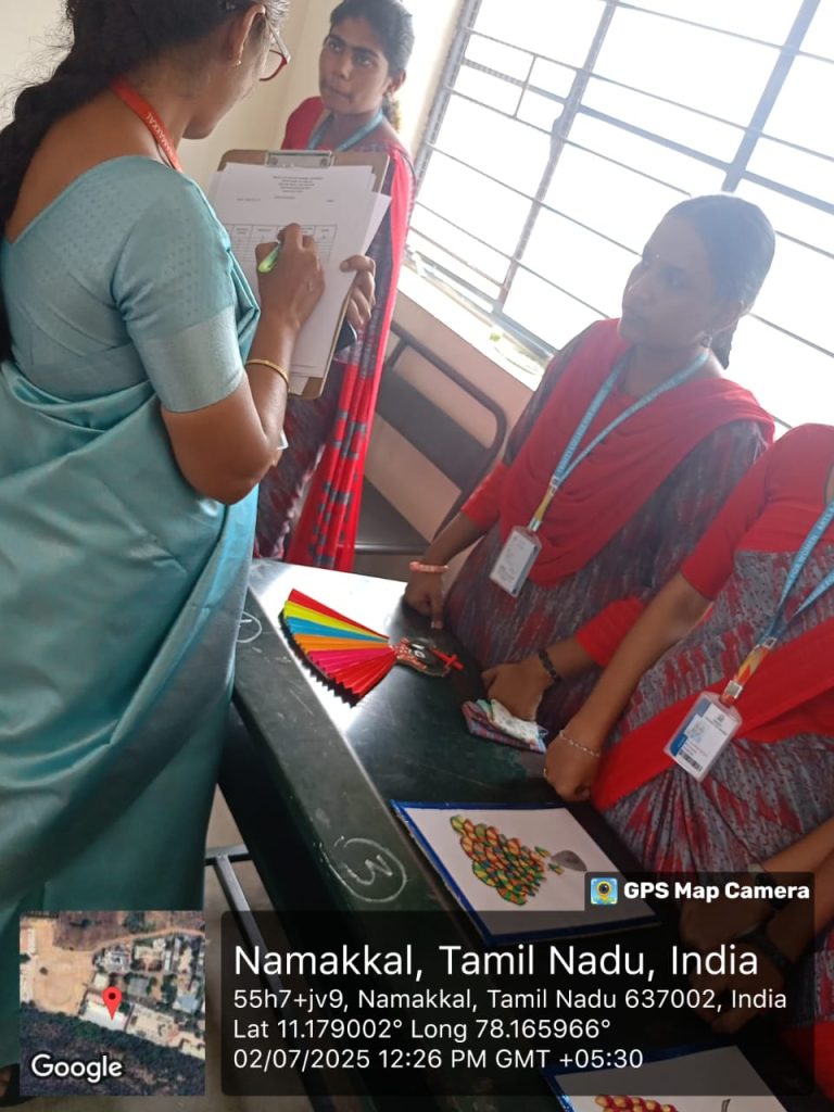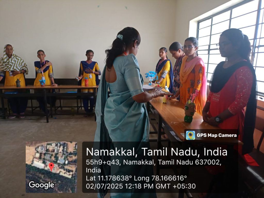 Under the auspices of the Department of English, Creative Arts Club of Trinity College for Women, Namakkal conducted a one-day event titled “Creative Horizons 2025” on 02nd July 2025.   The events like juice box gallery, eco-art installation, newspaper craft, waste cup craft, live crafting, costume crafting, etc., were conducted for the benefit of students of English.