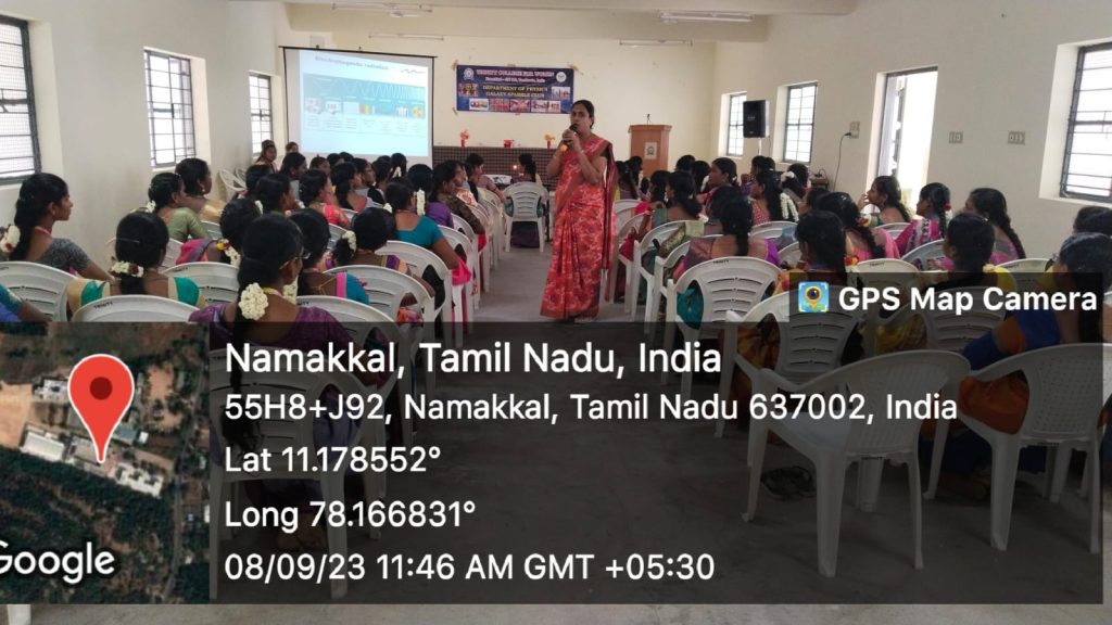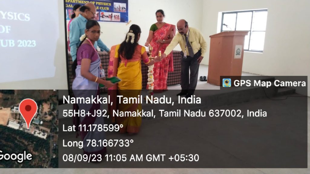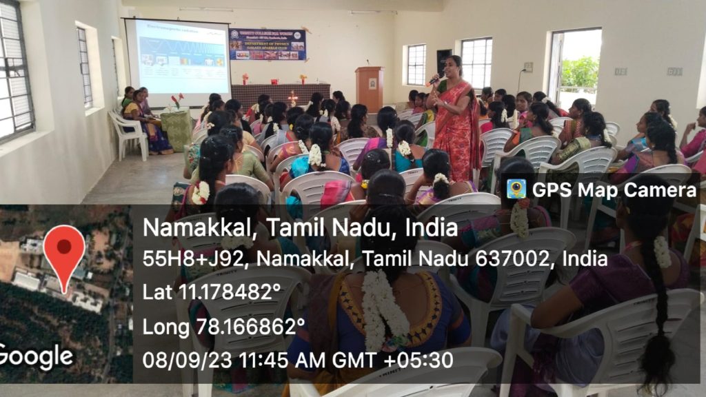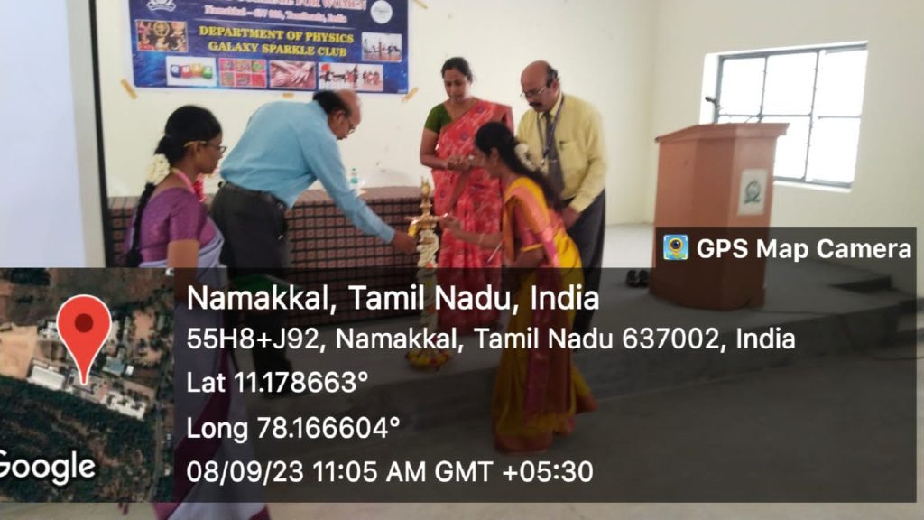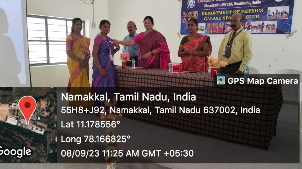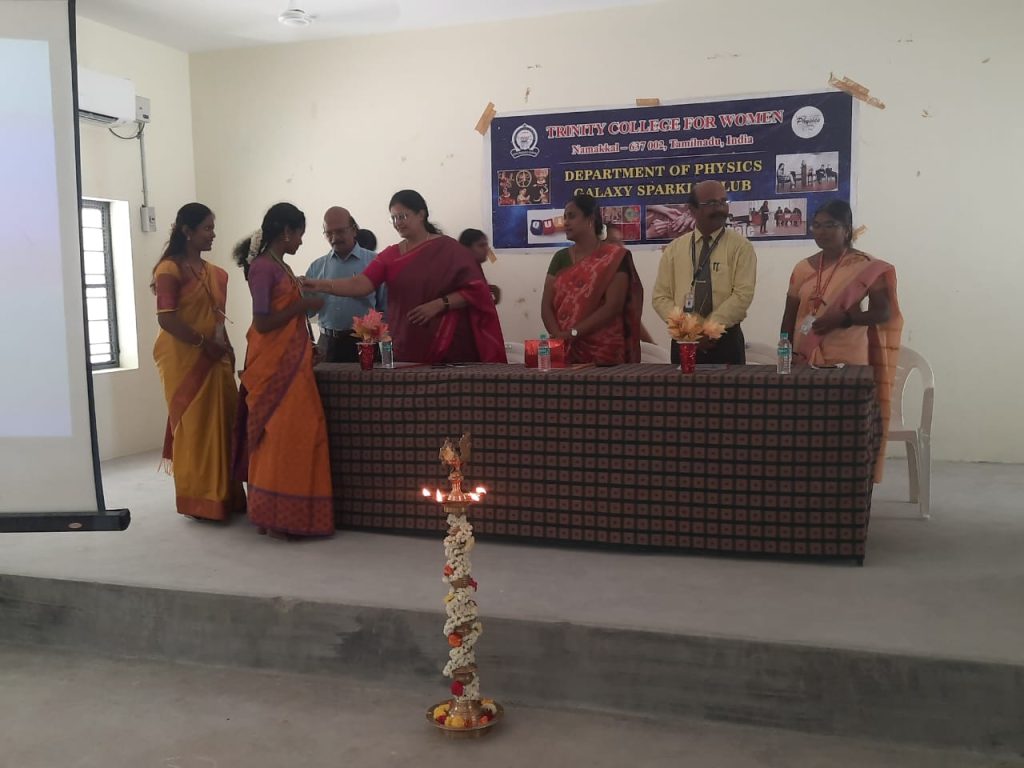 Dr. B. Lakshmi, Assistant Professor and Head, Department of Physics, of our college, introduced the chief guest. The faculty members of Physics, Mrs. B. Kavitha, Dr. R. Sakunthaladevi, Mrs. S. Mohanapriya, Mrs. V. Kalaivani, Ms. K. Saranya, and Mrs. P. Gowthami, and the students of Physics (both undergraduate and postgraduate physics) took part.