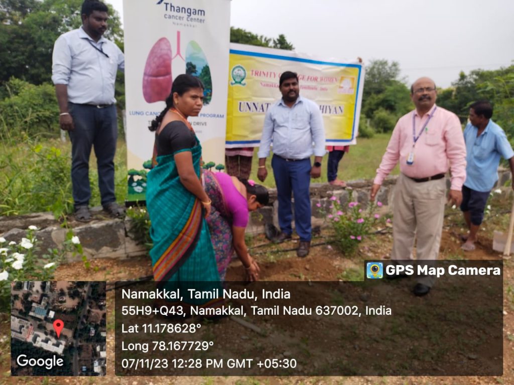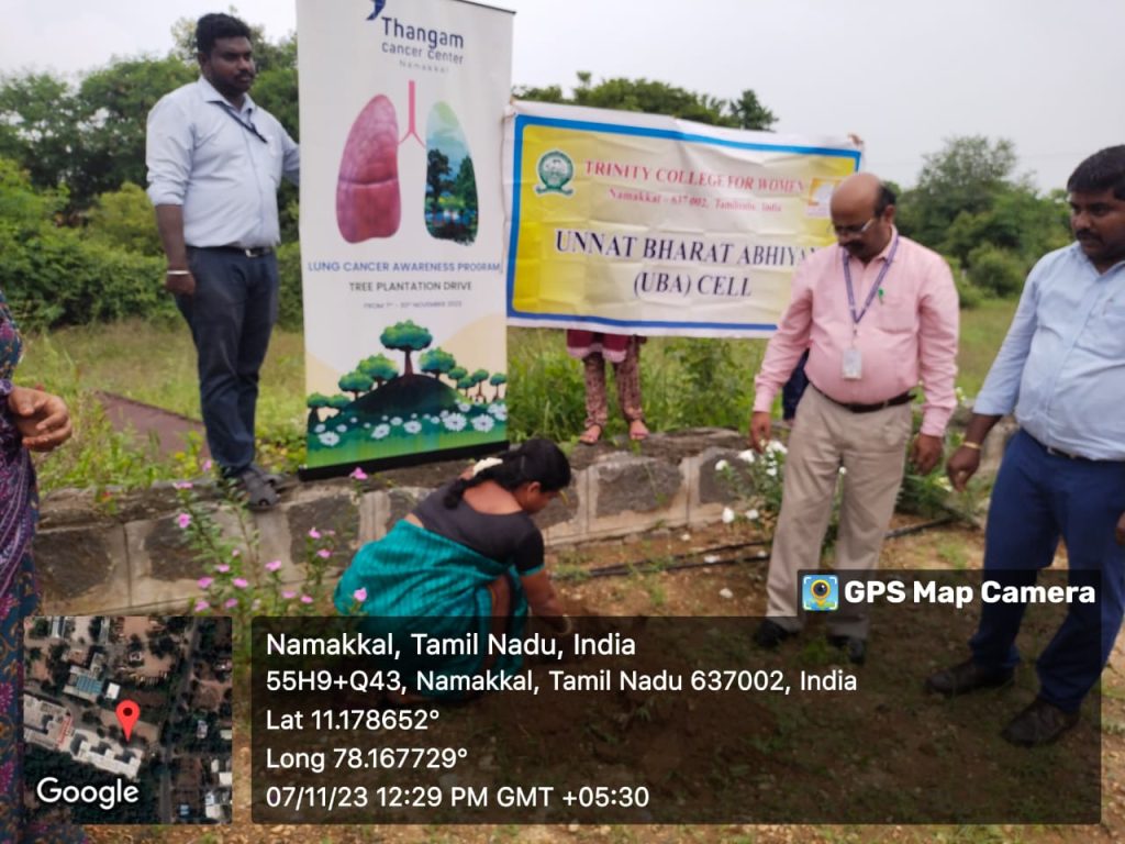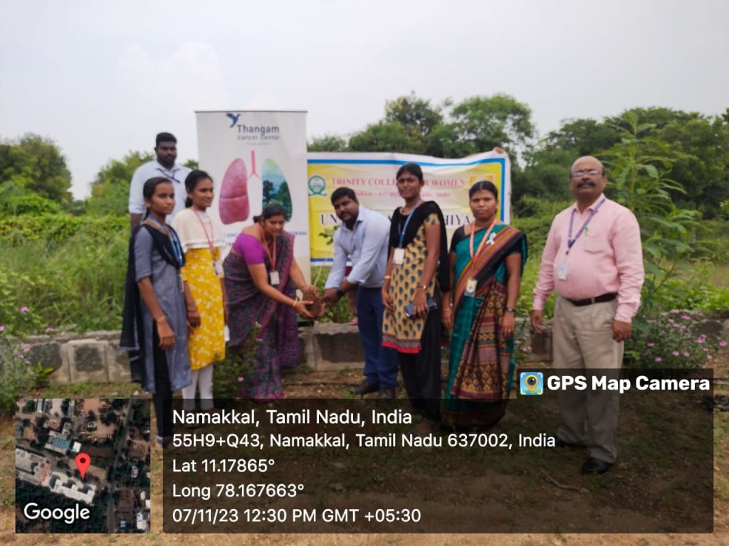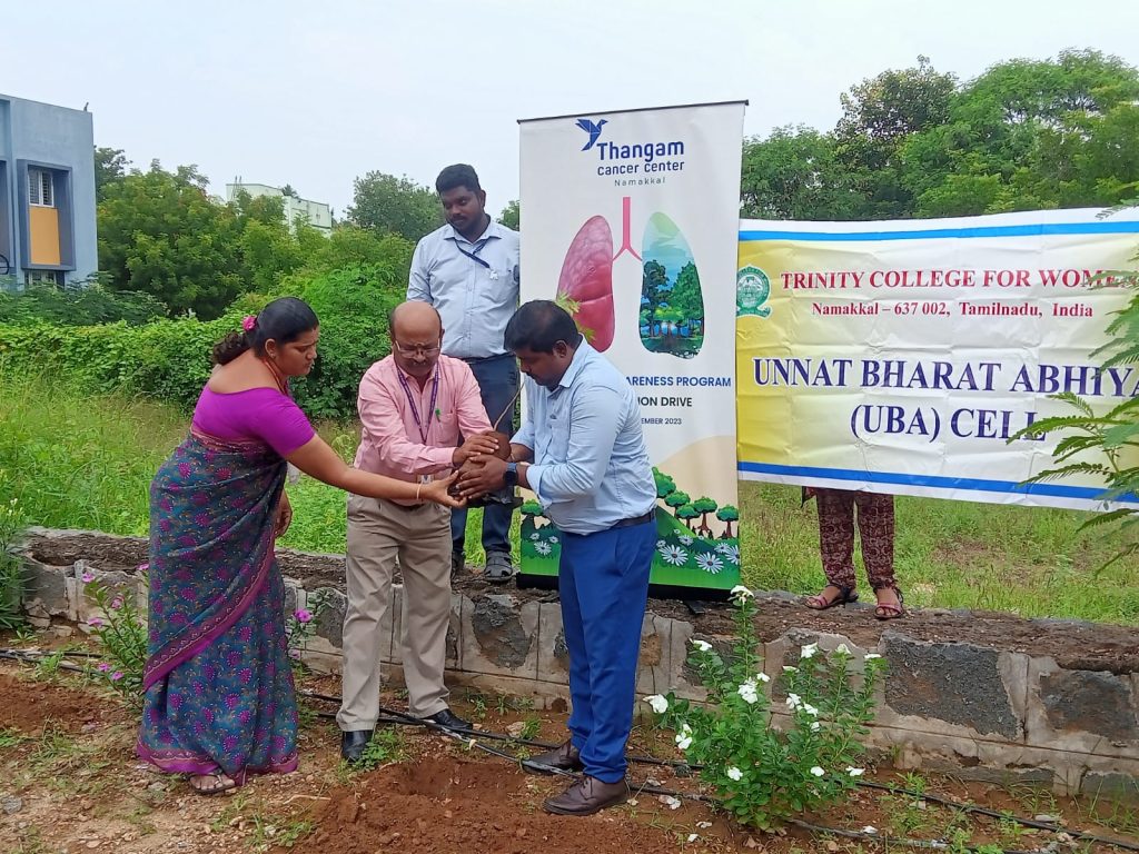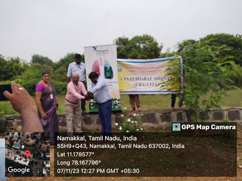 Under the auspices of Unnat Bharat Abhiyan Cell, Trinity College for Women, Namakkal, and M/s. Thangam Hospitals and Cancer Centre, Namakkal jointly conducted the “Tree Plantation Programme” on the campus of the college on November 7, 2023.