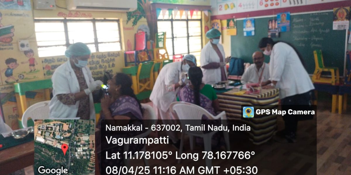 Under the auspices of Unnat Bharat Abhiyan Cell, Trinity College for Women, Namakkal organized a “Free Dental Checkup and Awareness Camp” on 08th April 2025. It was held on the premises of Trinity Academy Matric Higher Secondary School, Trinity Nagar, Mohanur Road, Vagurampatti, Namakkal. The main objective of the dental camp is to create oral health awareness and other facilities for a dental check-up to identify and resolve oral health issues.