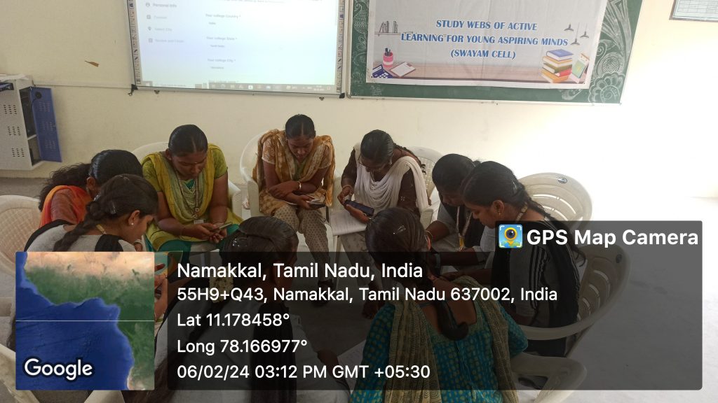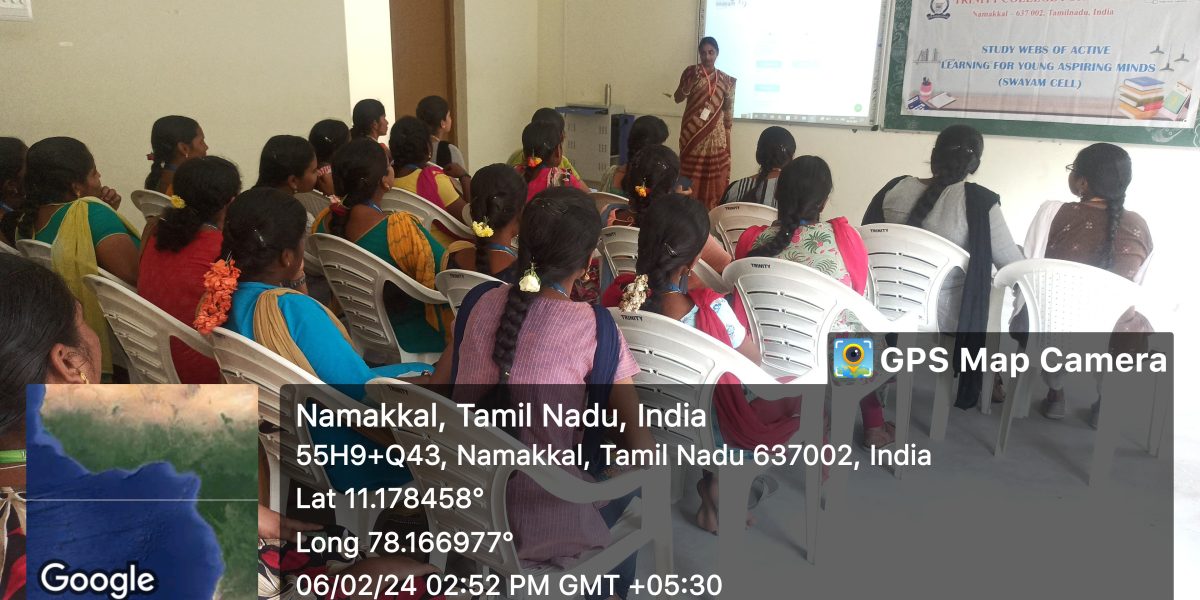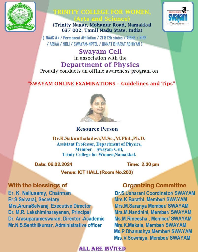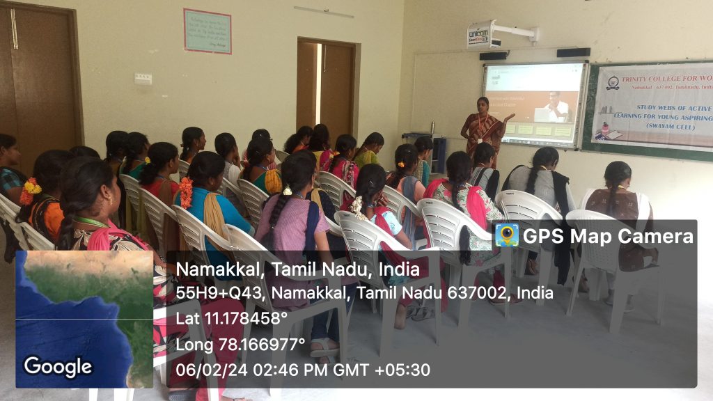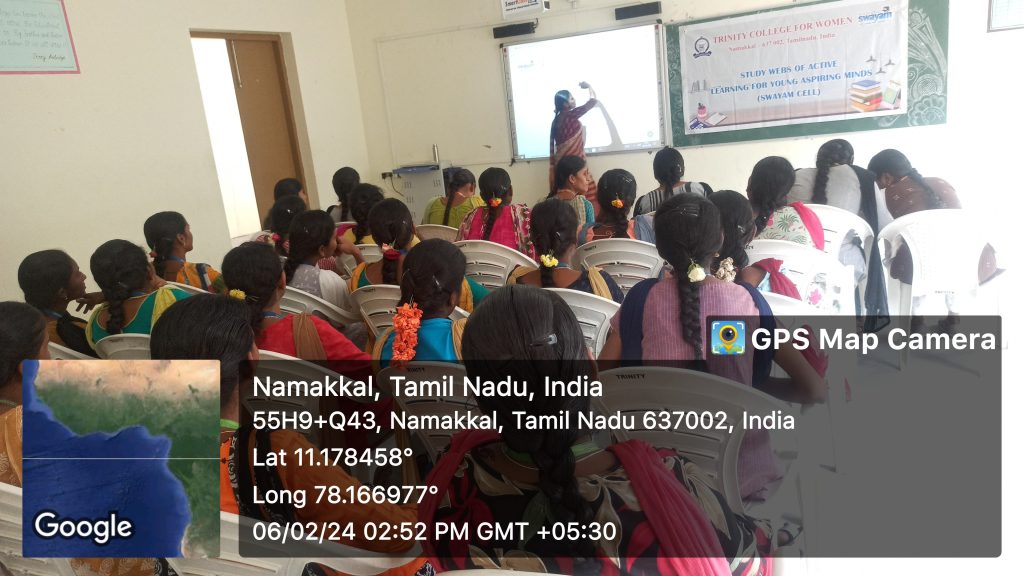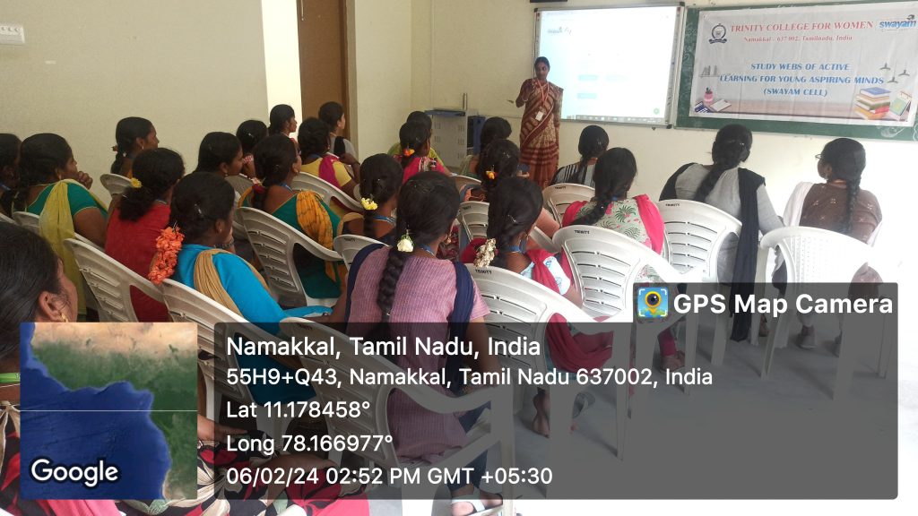 Under the SWAYAM Cell, Trinity College for Women, Namakkal, in association with the department of Physics, conducted a program entitled “SWAYAM Online Examinations: Guidelines and Tips” on February 6, 2024.