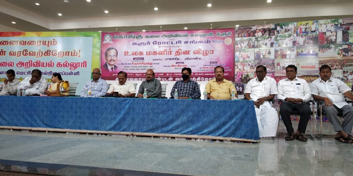 Kongu Arts and Science College, Dheeran Chinnamalai Nagar, Vennaimalai, Karur and Rotary Club, Karur jointly celebrated “International Women’s Day” on 8th March 2021 at the venue of Atlas (அட்லஸ் கலையரங்கம்) in Karur. Mr. Atlas M. Nachimuthu, President, Kongu Educational Trust and Correspondent, Kongu Arts and Science College, Karur presided over the programme.