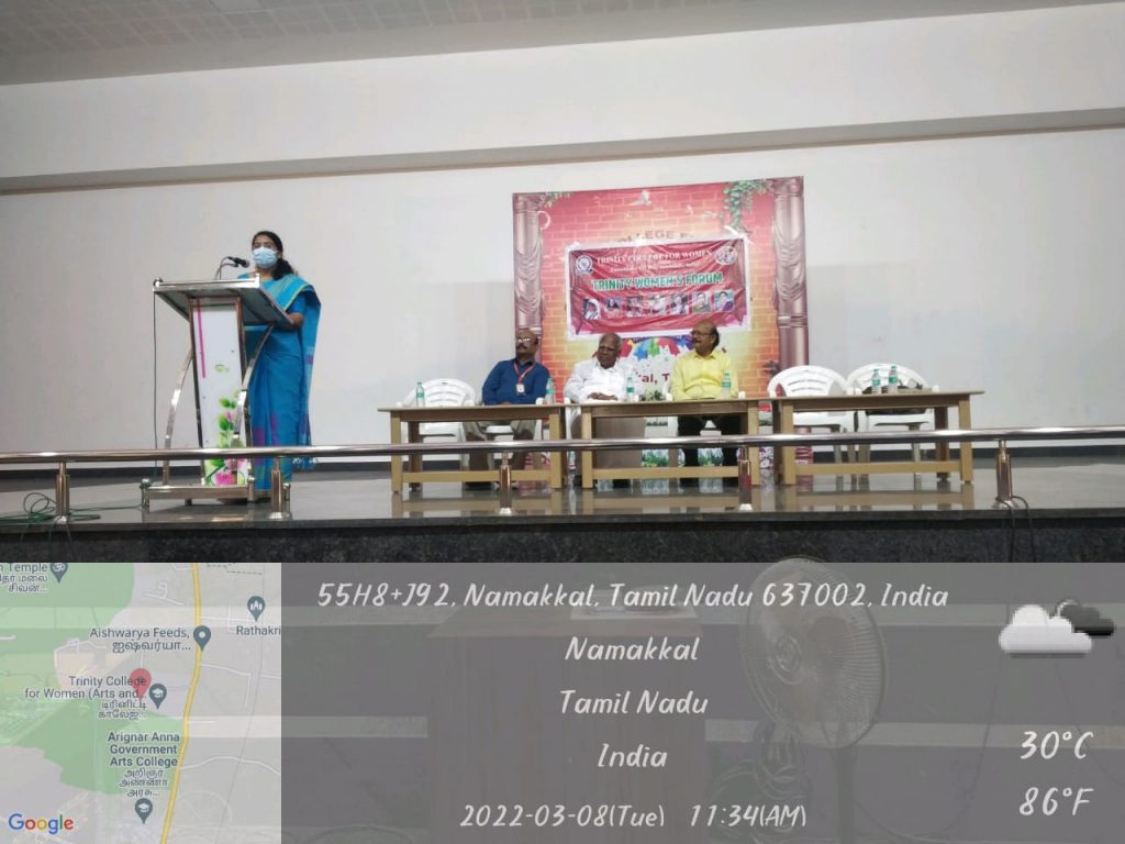 The International Women’s Day, which was observed on 8th March 2021 was celebrated at Trinity College for Women (Arts and Science), Namakkal.