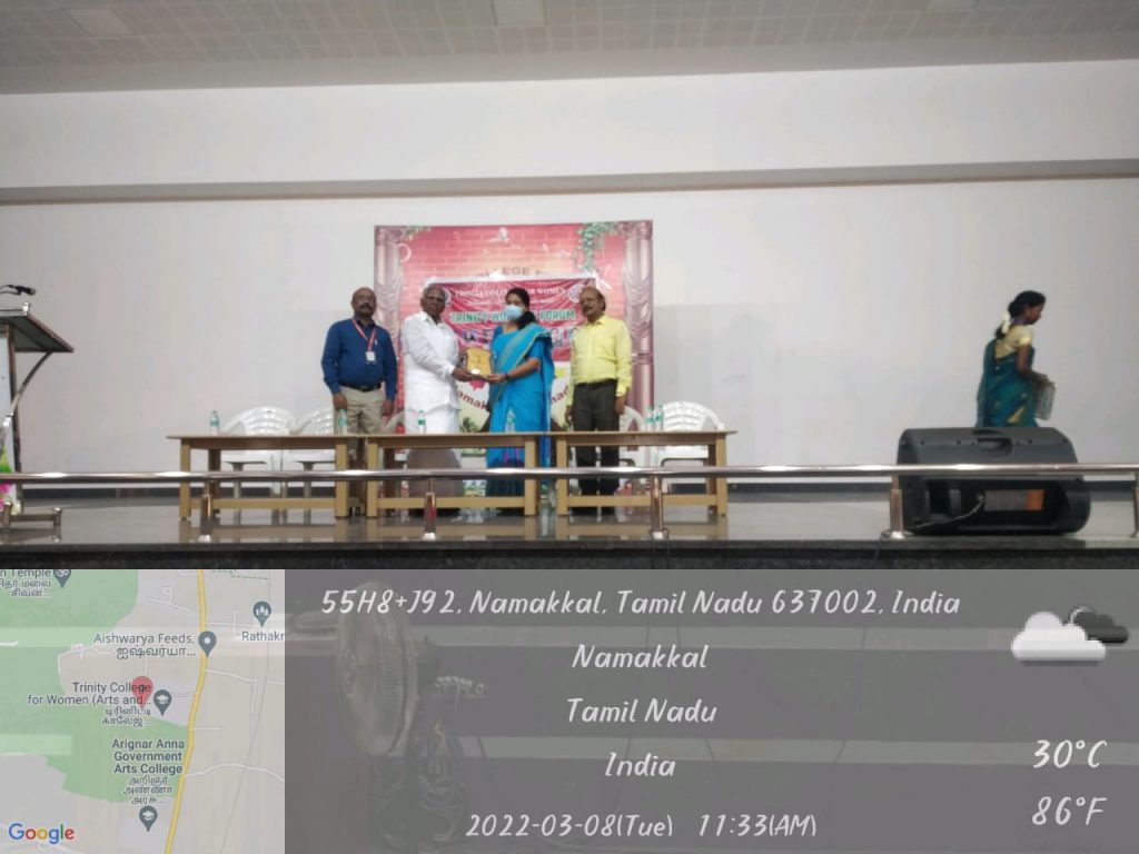 Dr. M.R. Lakshiminarayanan, Principal of Trinity College for Women delivered the welcome address. Mr. P.K. Sengodan, Chairman of Trinity College for Women, in his presidential address, said that women are a wonderful creation by God. He also stated that a woman has a major role in shaping the society. Er. K. Nallusamy, Secretary of the College emphasized the need for physical and mental strength for women to face the challenges of lifeDr Arasuparameswaran, Director – Academic focused on women’s growth for the past 50 years in India.