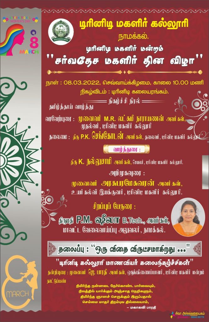 INTERNATIONAL WOMEN’S DAY CELEBRATIONS AT TRINITY COLLEGE FOR WOMEN, NAMAKKAL