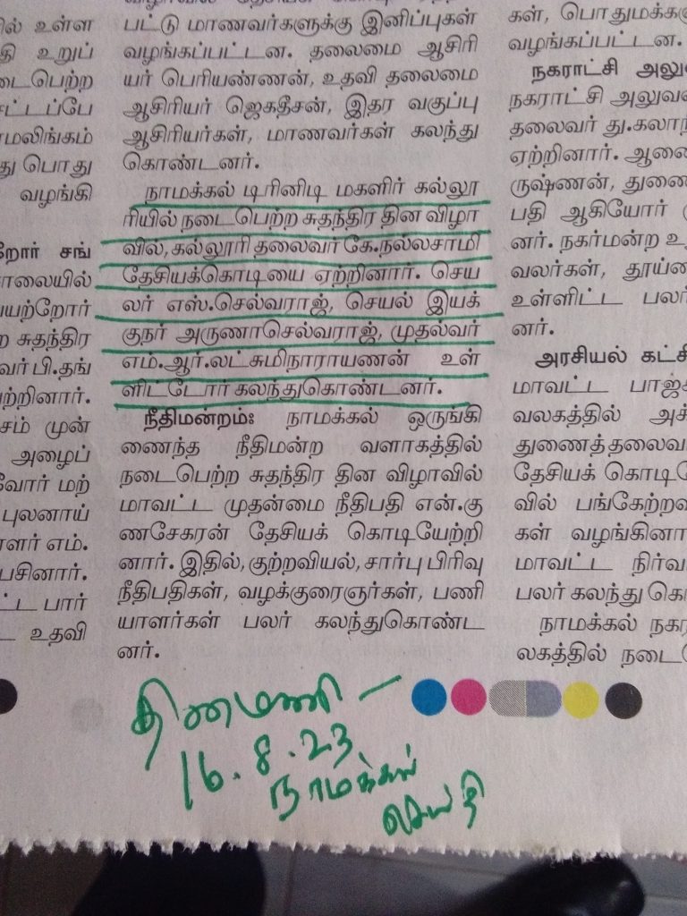 YRC Activities for the month of August 2023. – Reg., with photos and messages